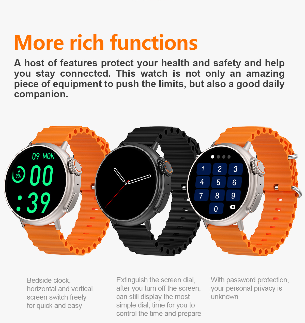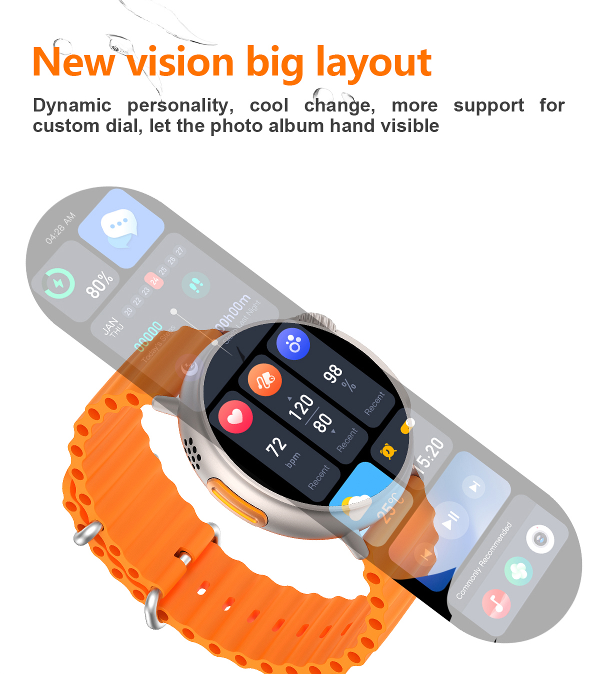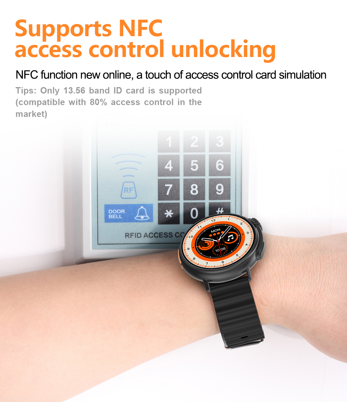 Features: Waterproof, taking photos, taking steps, heart rate monitoring, blood pressure measurement, social entertainment, Bluetooth calling, NFC function, intelligent reminder, remote selfie, sleep monitoring, blood oxygen detection