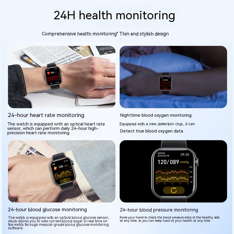 Functions: heart rate monitoring, blood pressure measurement, social entertainment, body temperature measurement, Bluetooth calling, smart reminder, remote control selfie, sleep monitoring, blood oxygen detection