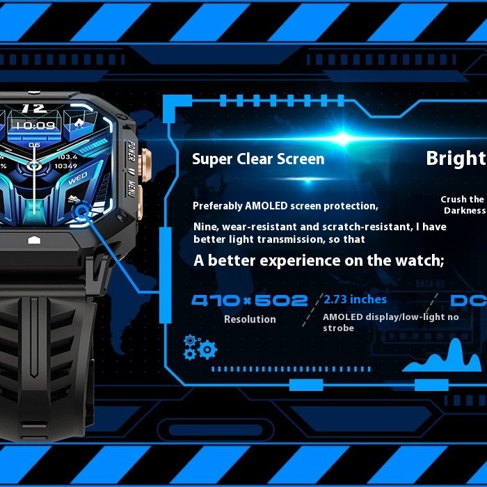 Functions: blood pressure measurement, social entertainment, smart reminder, remote control selfie, sleep monitoring, blood oxygen detection