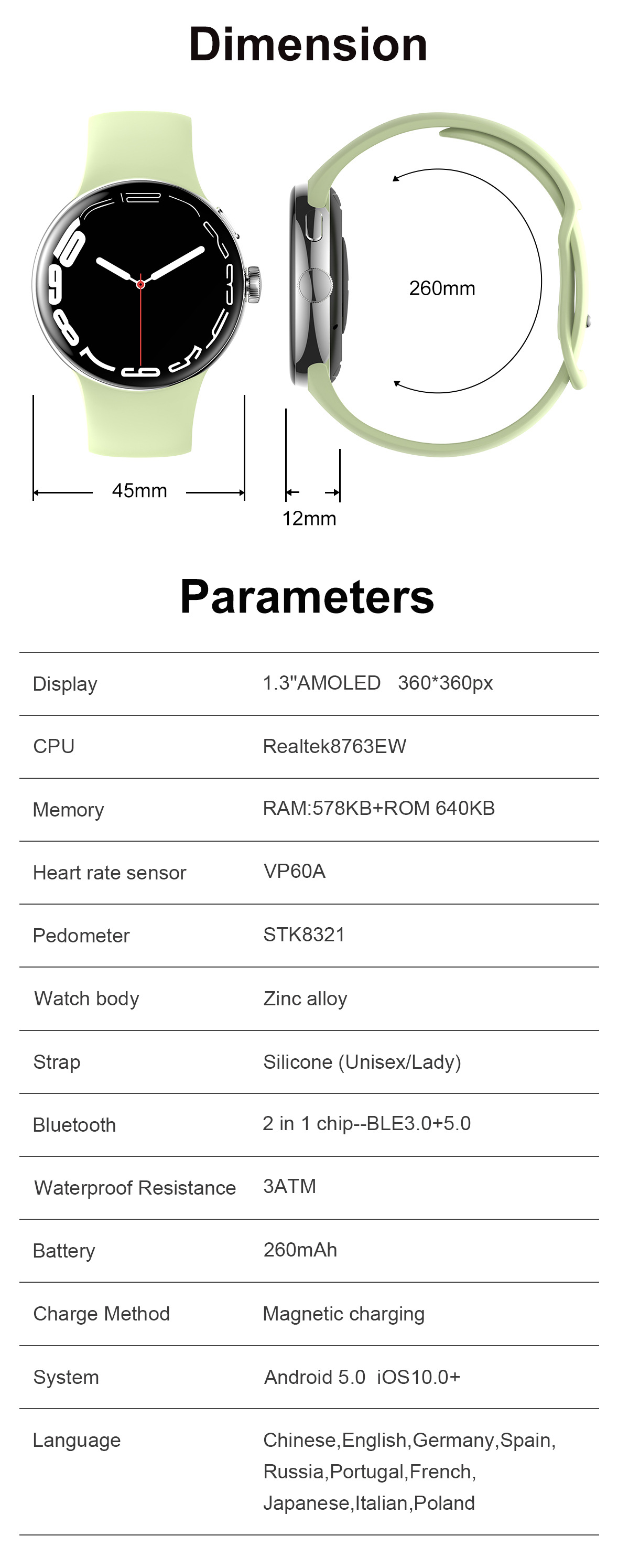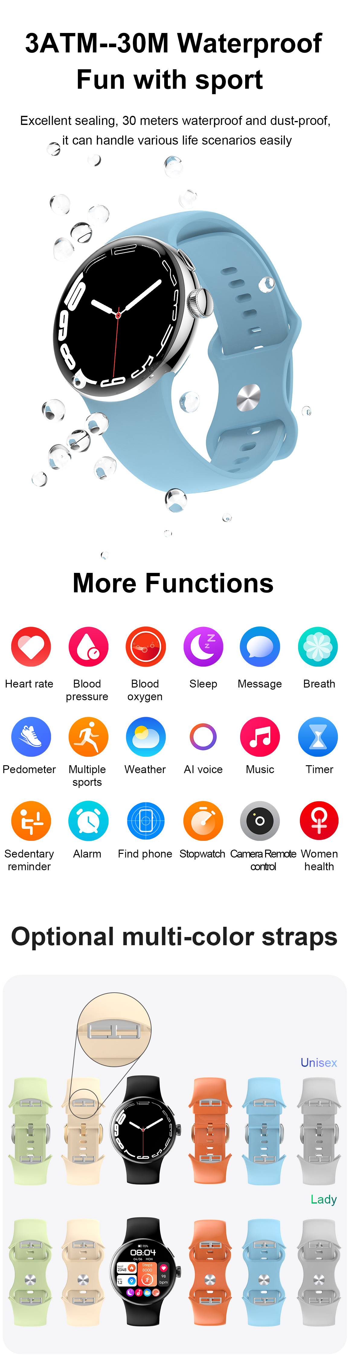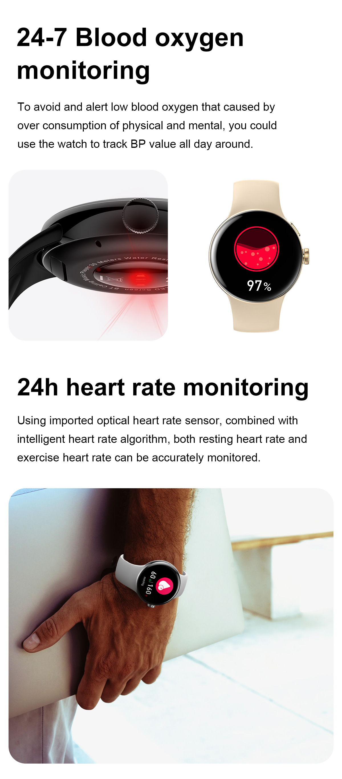 Functions: Waterproof, photographing, step counting, heart rate monitoring, smart reminder, remote control selfie, sleep monitoring, blood oxygen detection