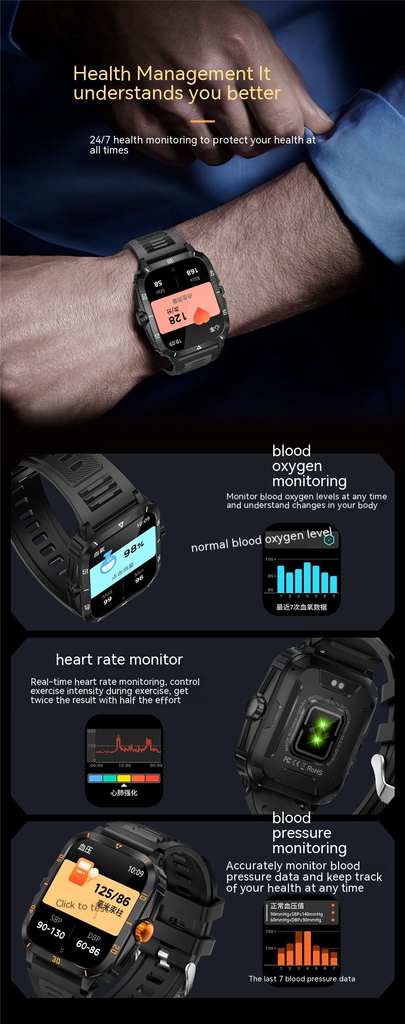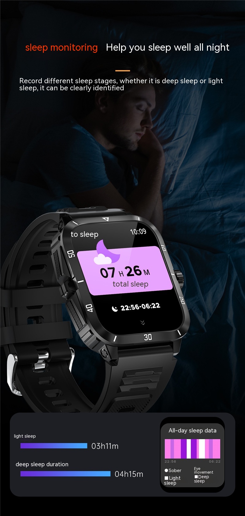 Functions: step counting, heart rate monitoring, smart reminder, sleep monitoring