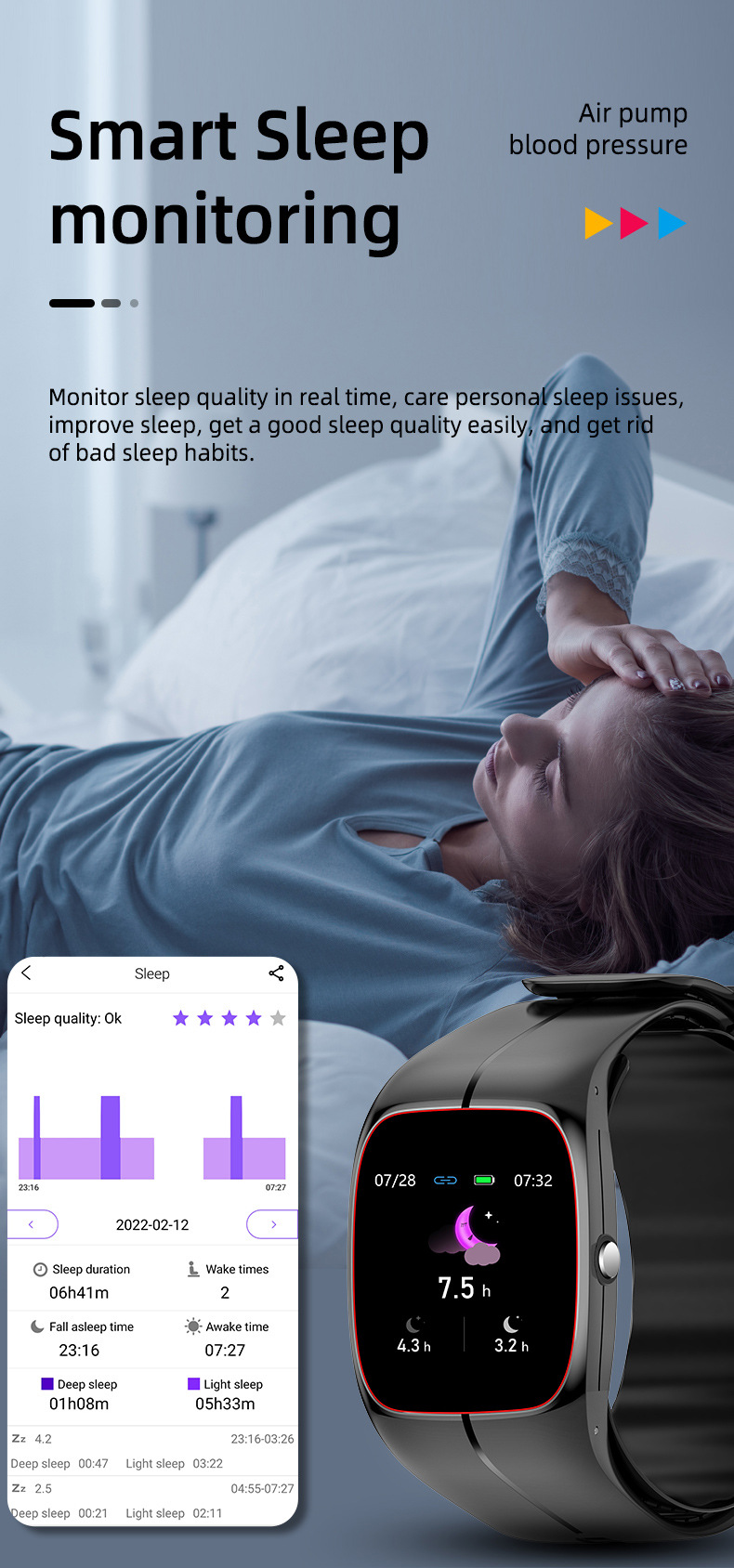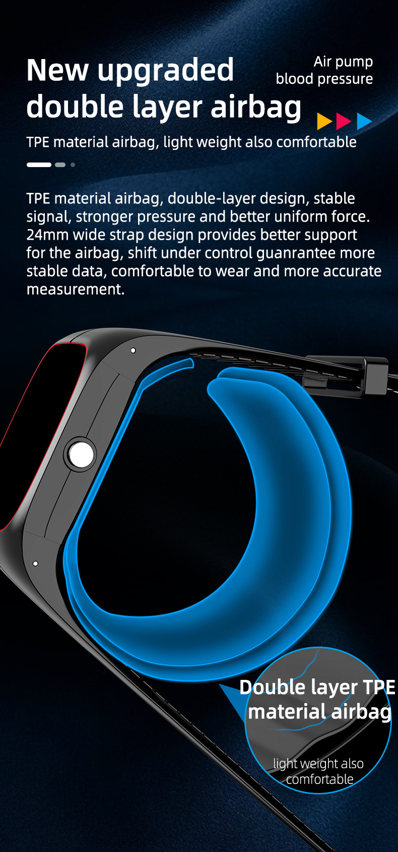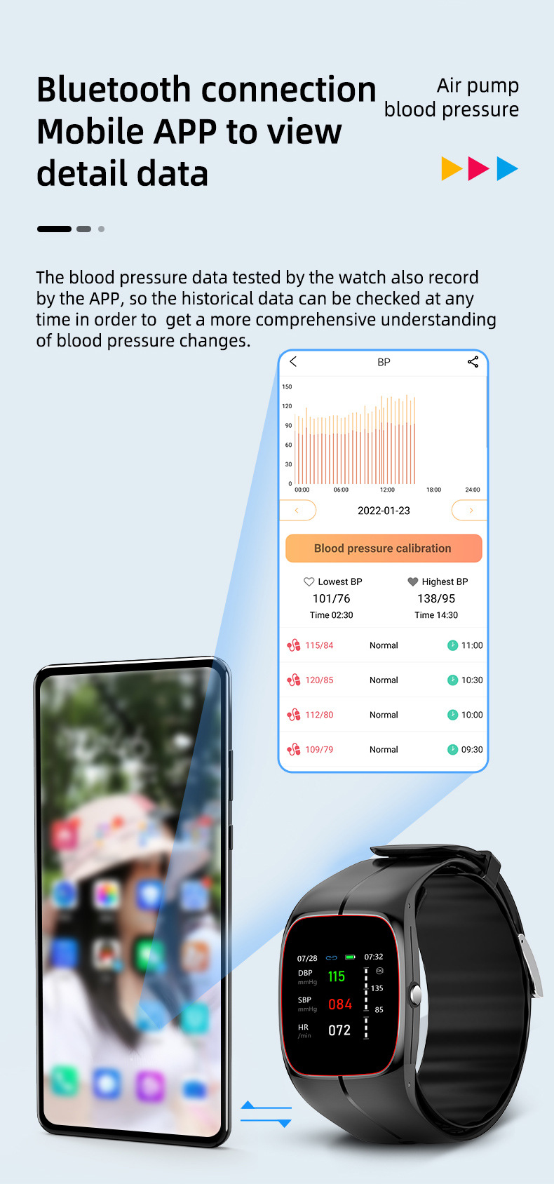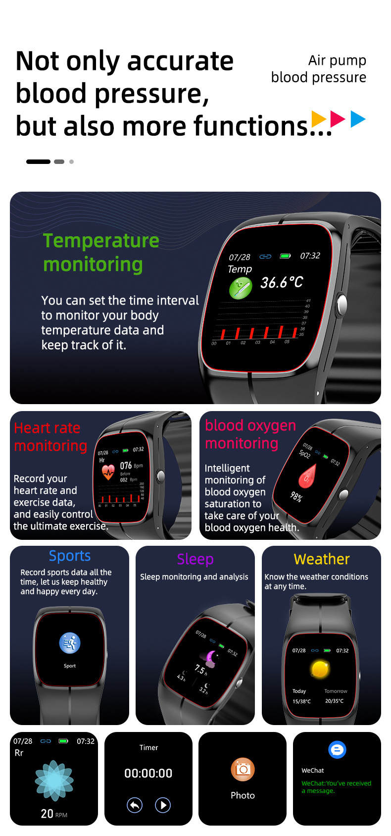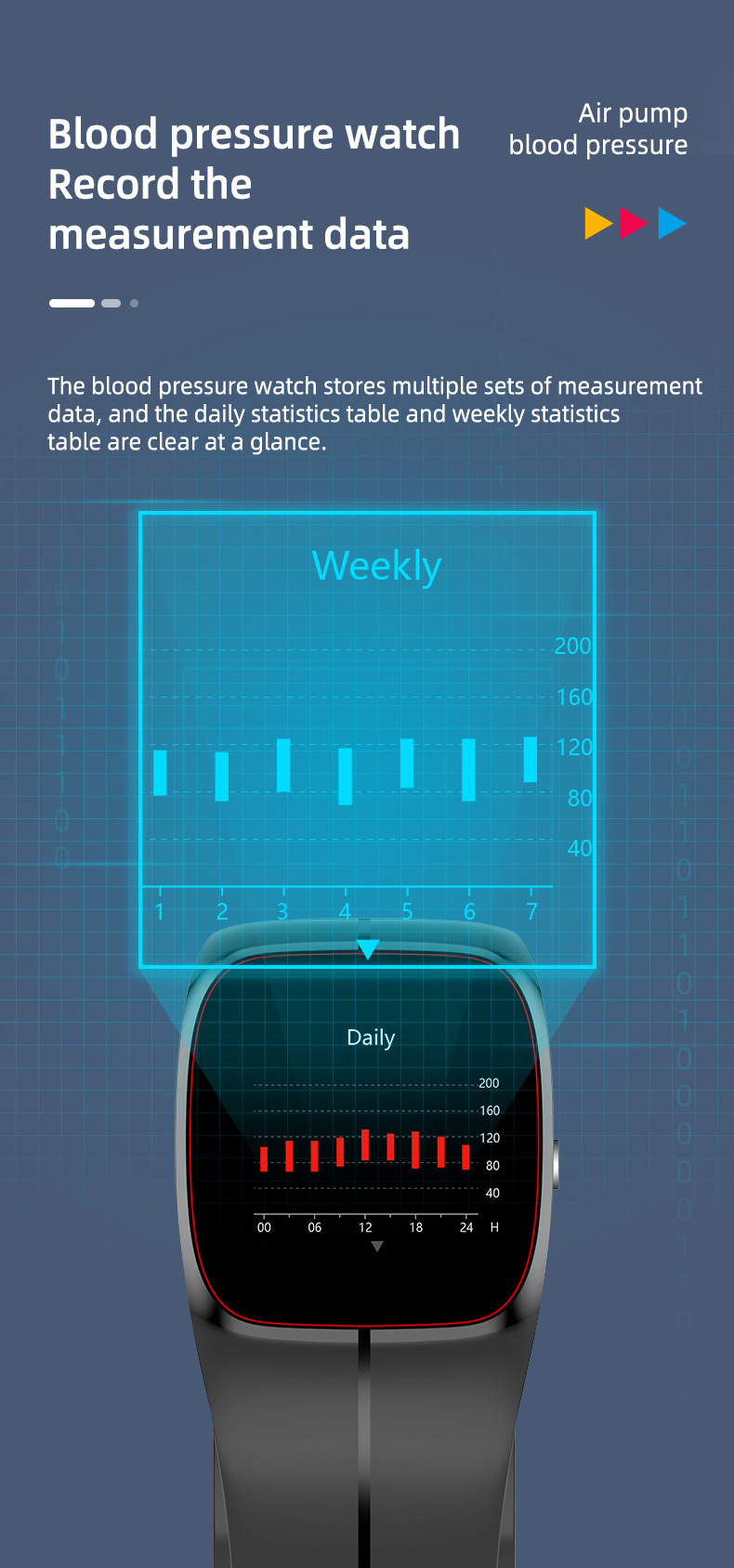 Functions: step counting, heart rate monitoring, blood pressure measurement, smart reminder, remote control selfie, sleep monitoring, blood oxygen detection