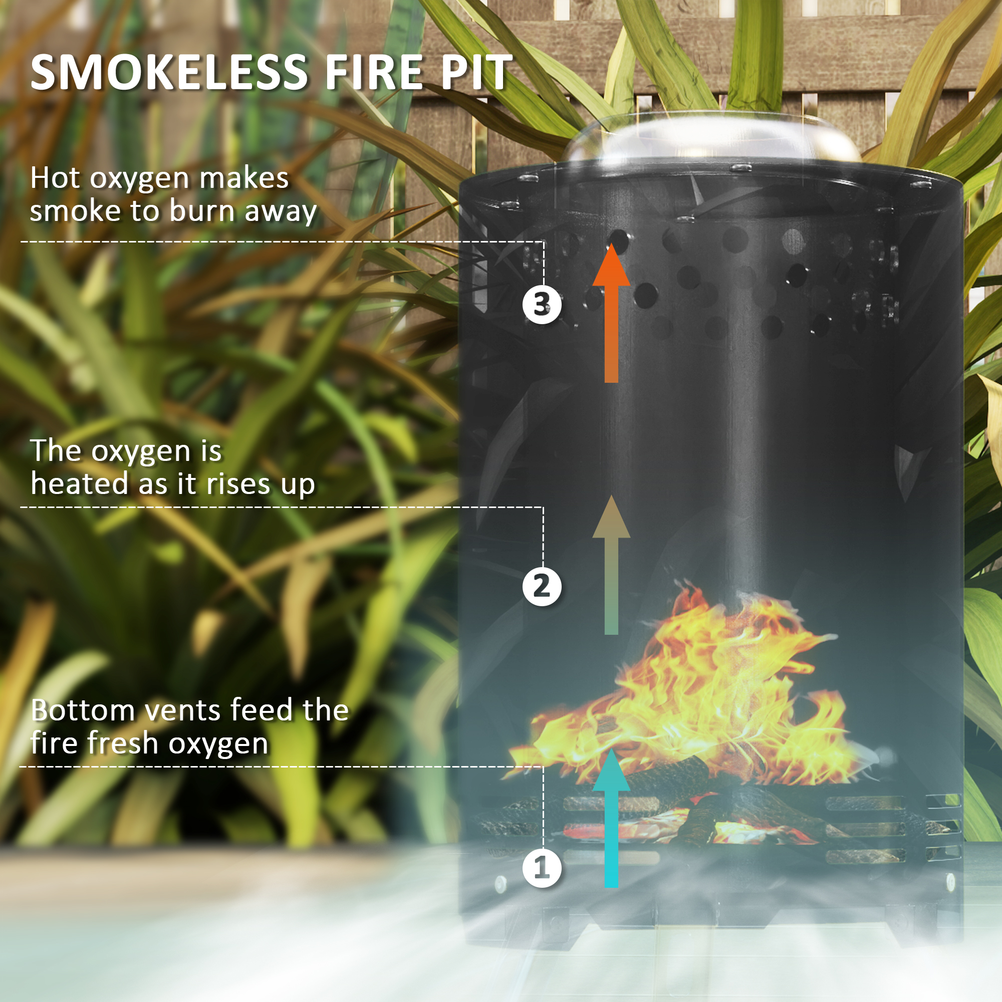 Sleek, stylish and super helpful: say hello to this modern outdoor fire pit. Made from powder-coated stainless steel so it's tough and high heat resistant, it's crafted into a smooth cylinder design. It has a smokeless secondary combustion system: oxygen enters from below and channels between the walls for a strong and powerful burn, whilst burning the fuel down to ash for a smokeless experience - enjoy the heat like never before!