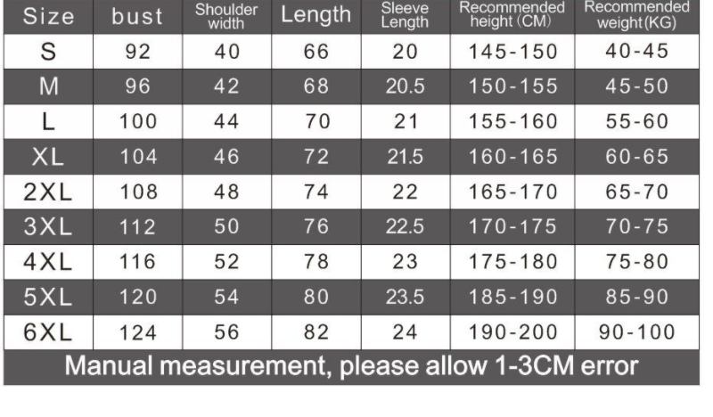 Size: S, M, L, XL, XXL, XXXL, 4XL, 5XL, 6XL