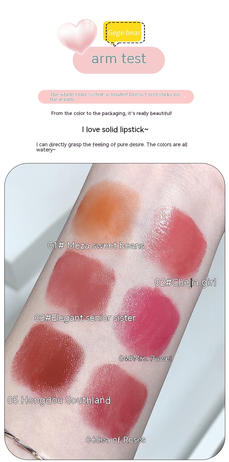 Color: 01# Japanese magazine sugar catch peas, 02# girl next door, 03# elegant senior, 05# red bean country, 06# rose Sea