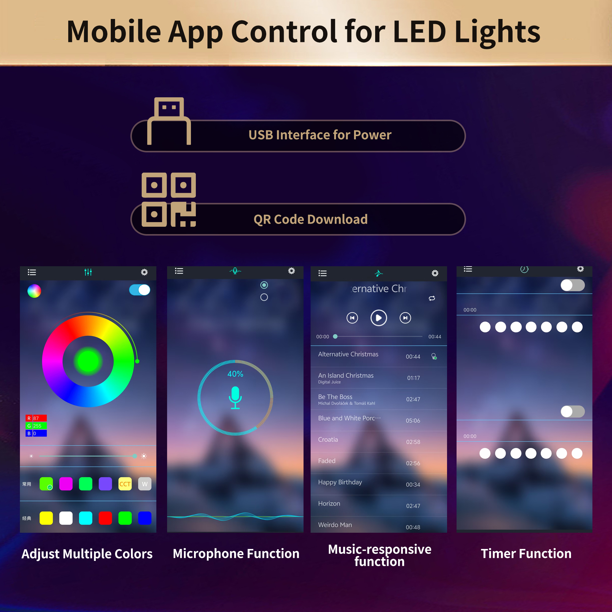 The open area in the middle of the cabinet is fitted with a colour-changing LED strip that can be controlled directly via a mobile app, offering multiple colour options. Scan and download the designated app to control the playback of local music files based on the intensity and rhythm of the beats. The lights will synchronise with the music's rhythm and intensity.