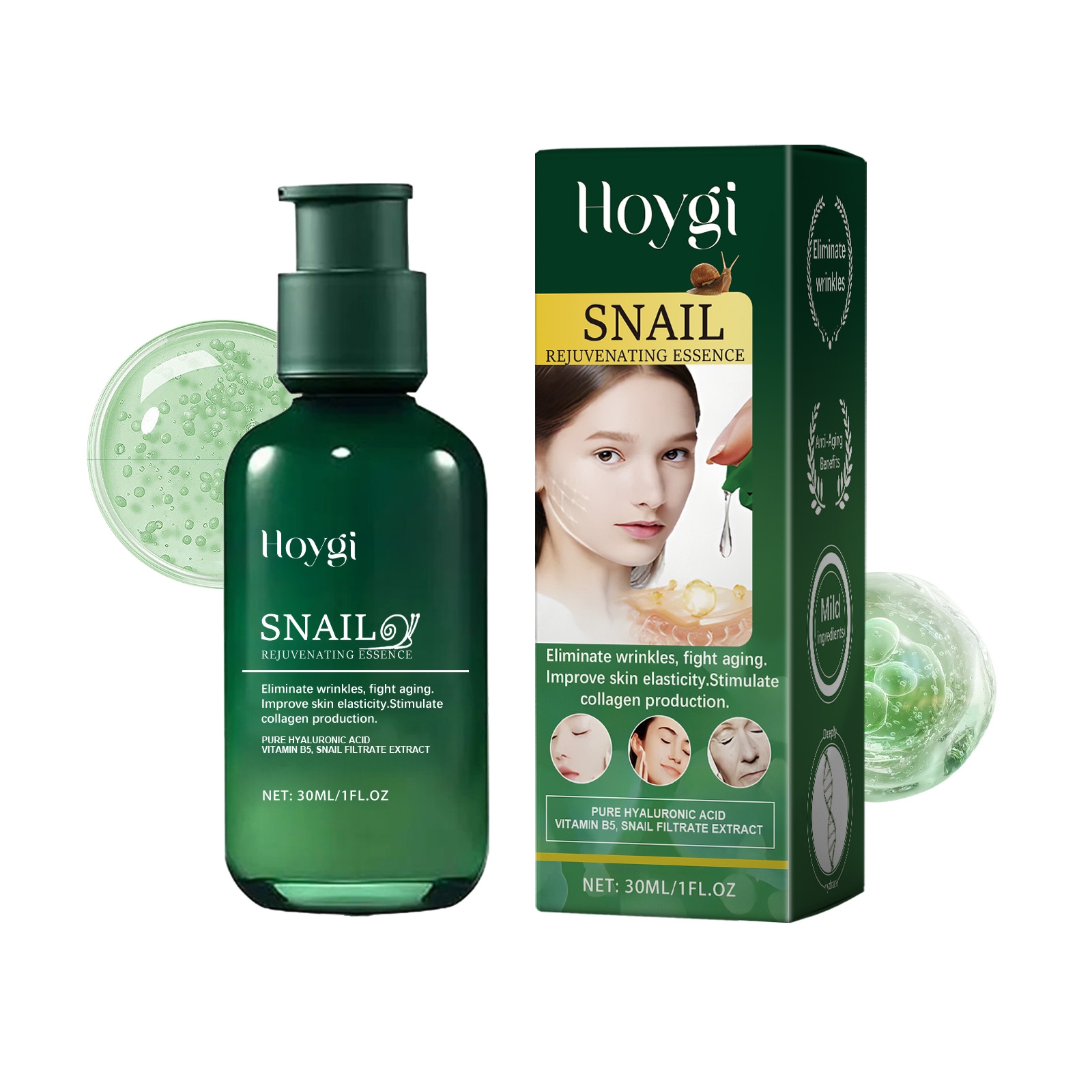 Specification: water, snail secretion filtrate, hyaluronic acid, calcium pantothenate, nicotinamide.