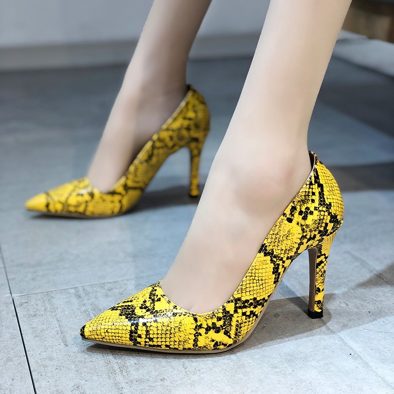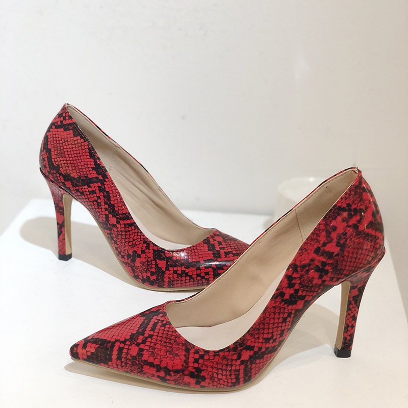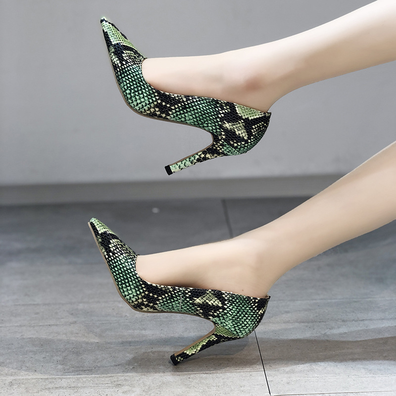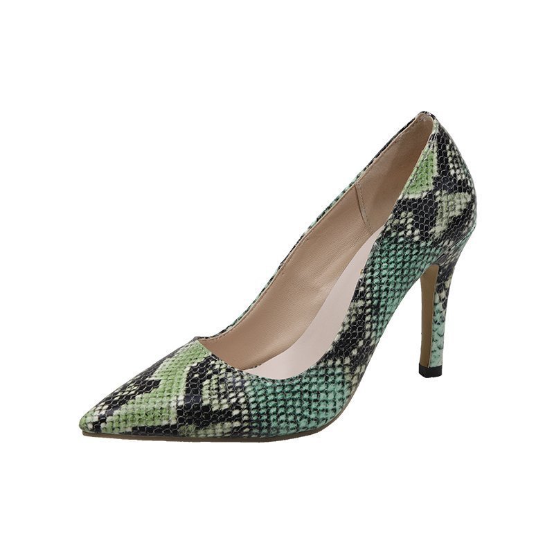 Snake-pattern Pointed Toe Stiletto Heels With Shallow Mouth Shoes