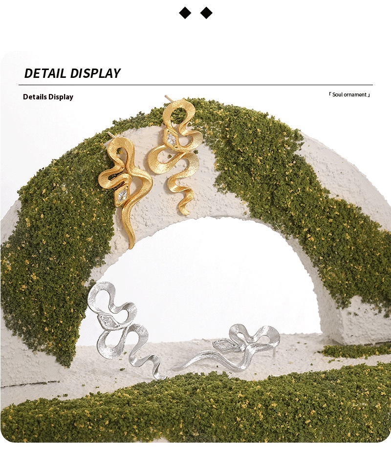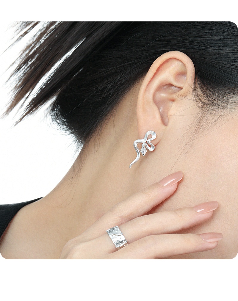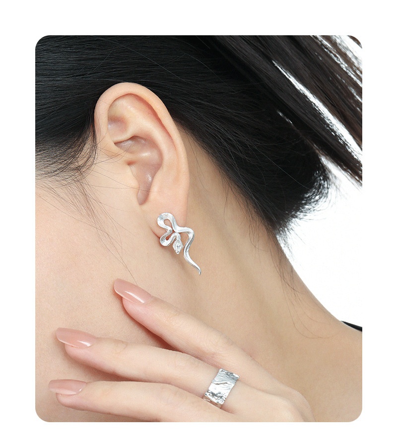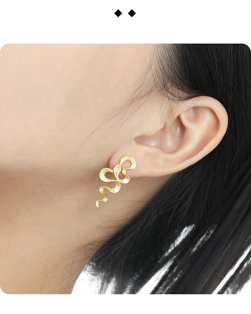Snake-shaped Texture Inlaid Zircon Stud Earrings Female S925 Sterling Silver Minority All-match