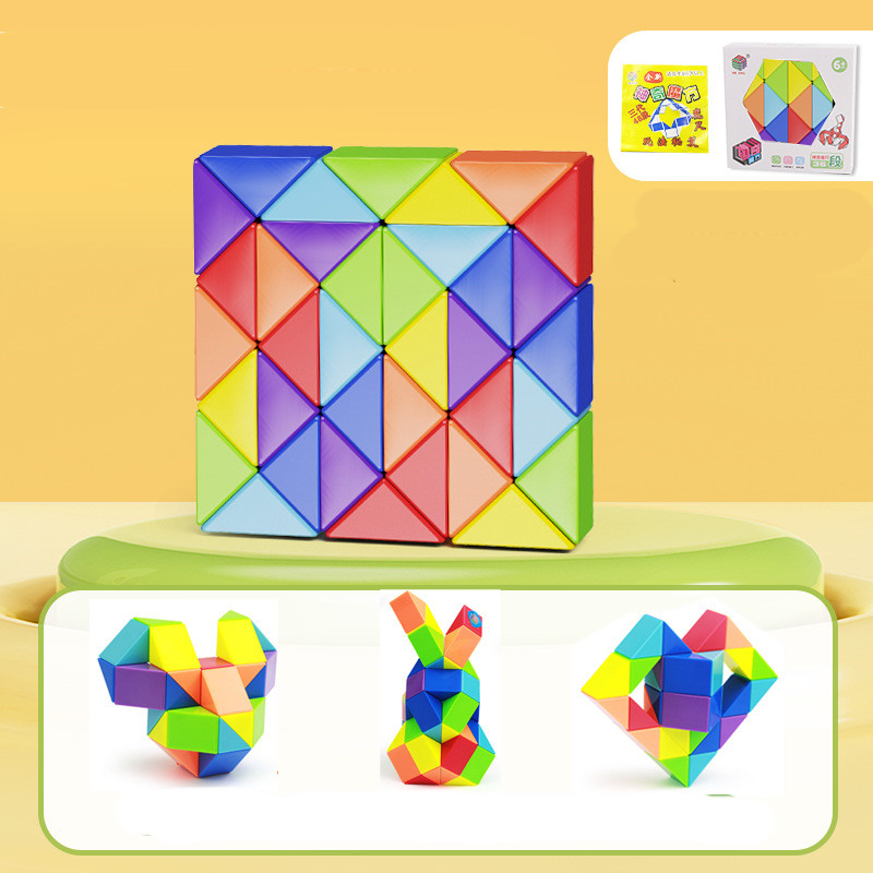 VARIOUS SHAPES: You can turn the puzzle favors into a straight line, snakes, dogs or other imaginative shapes by rotating the triangle blocks, bring challenges and fun to your fingers and brain