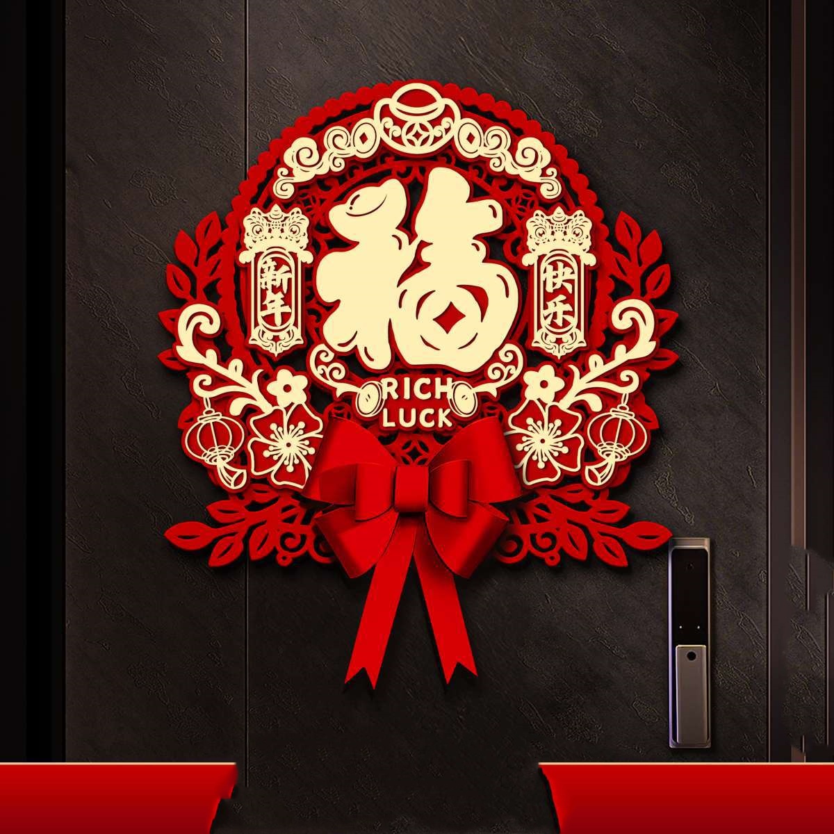 Color: Five Blessings, great luck in the year of the snake, blessings come to my home, great luck, blessings, happy new year, full blessings