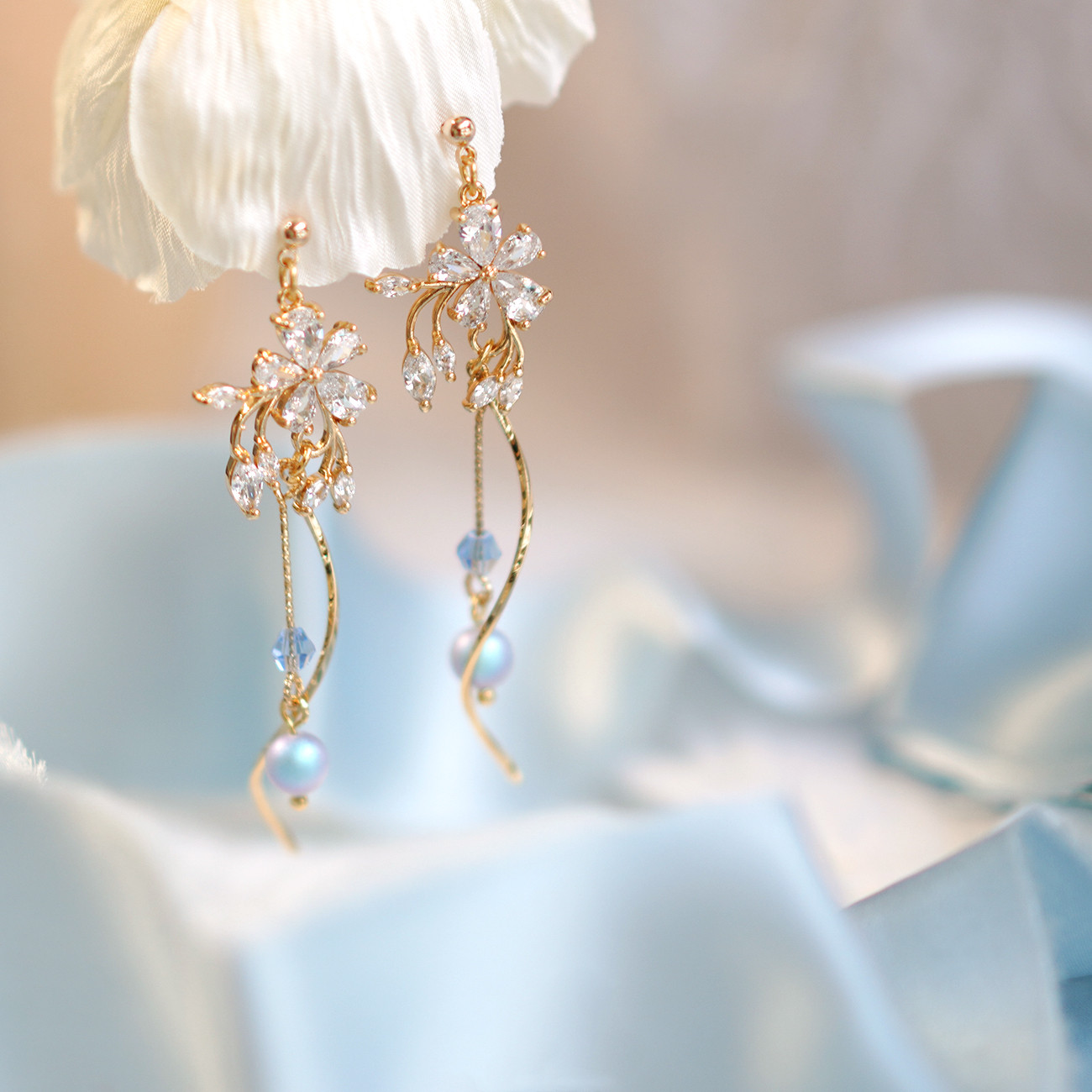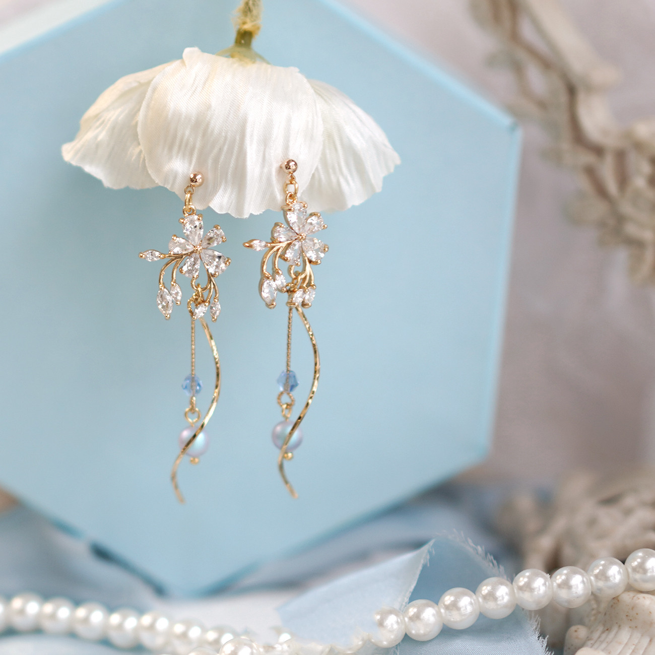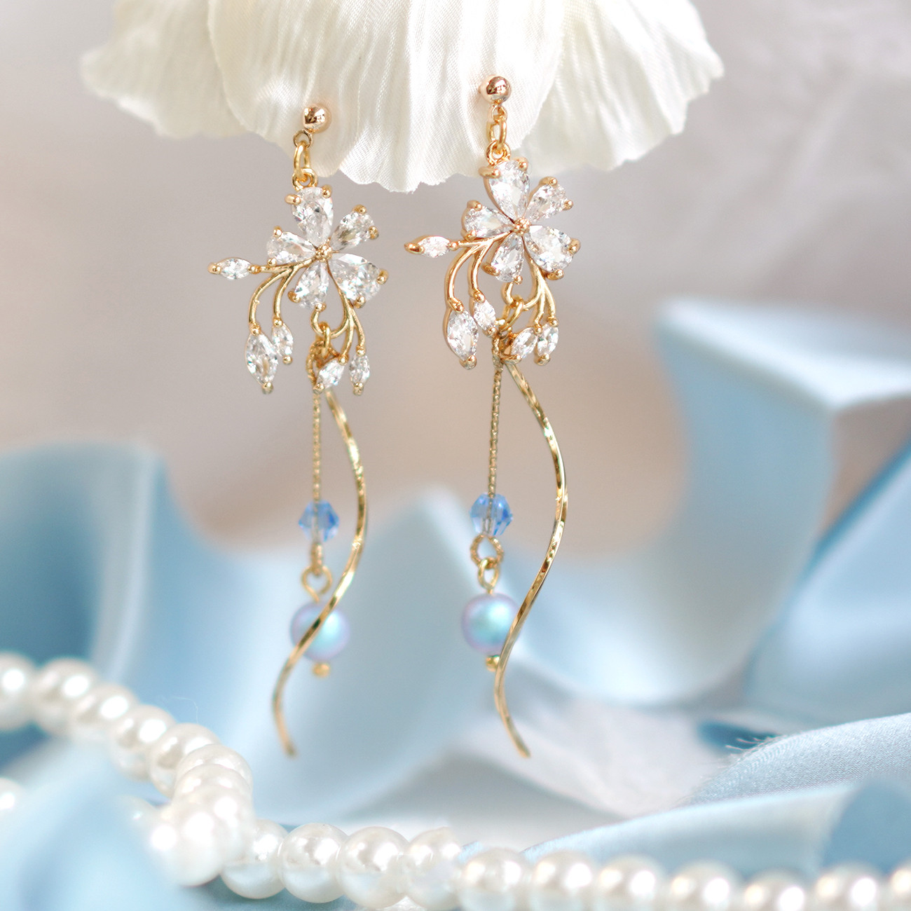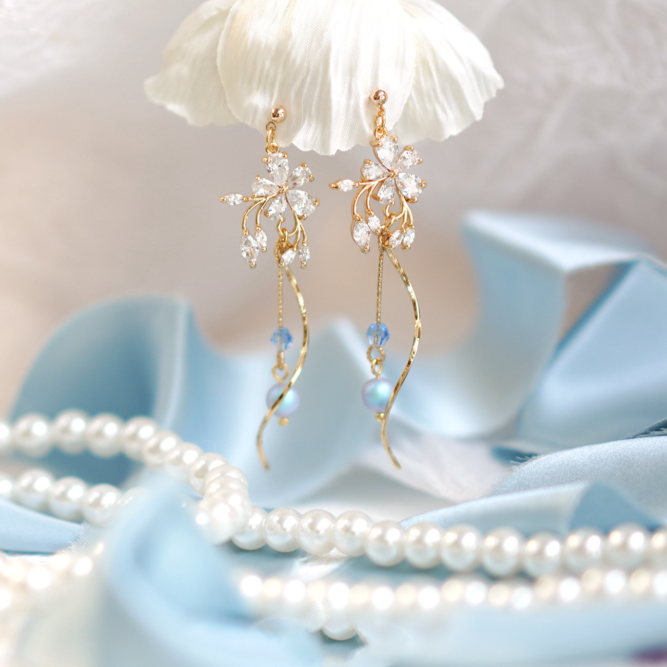 Color classification: Sterling silver needle earrings, one pair without ear holes, one pair with ear clips