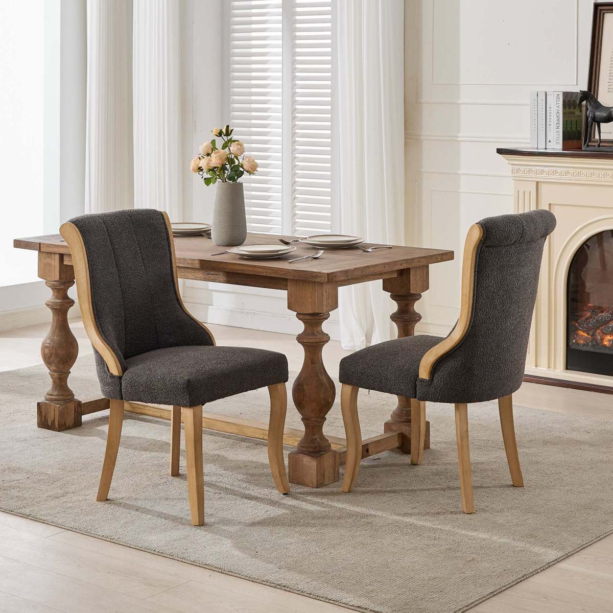 • Meticulous Craftsmanship in Every Detail:From the precisely carved wood curves to the expertly fitted upholstery, each chair showcases meticulous craftsmanship. The harmonious design of the flowing wood accents and curved legs not only enhances visual appeal but also guarantees lasting durability.