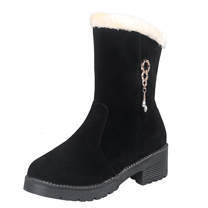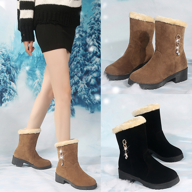 Snow Women's Mid-tube Rhinestone And Velvet Warm Martin Boots