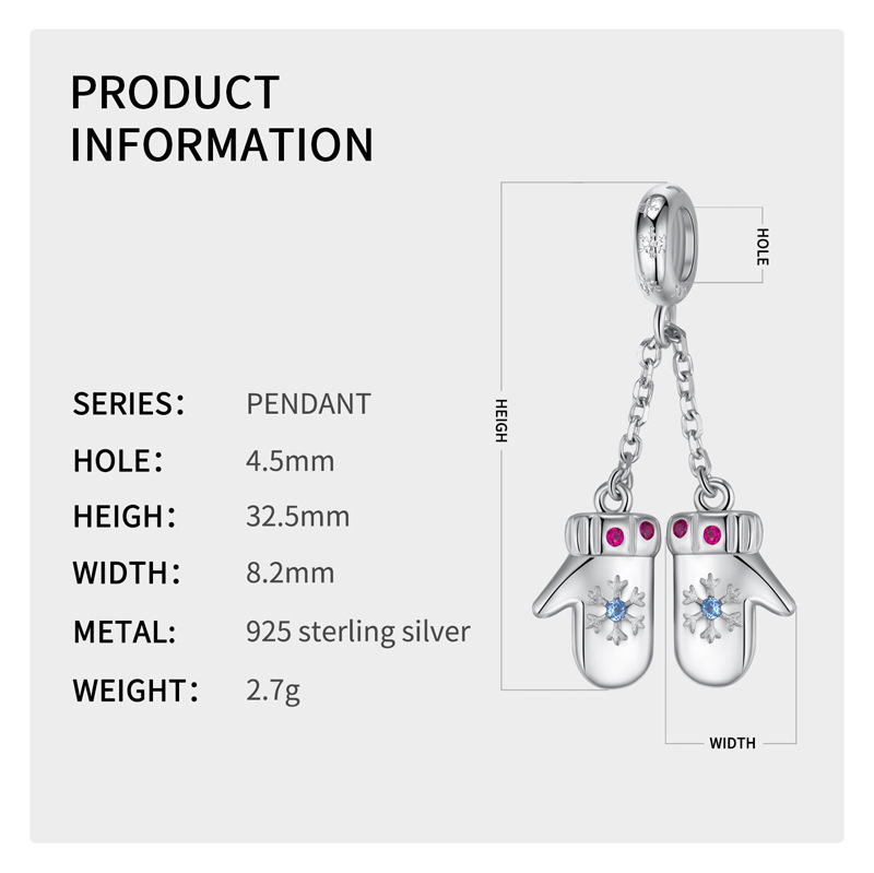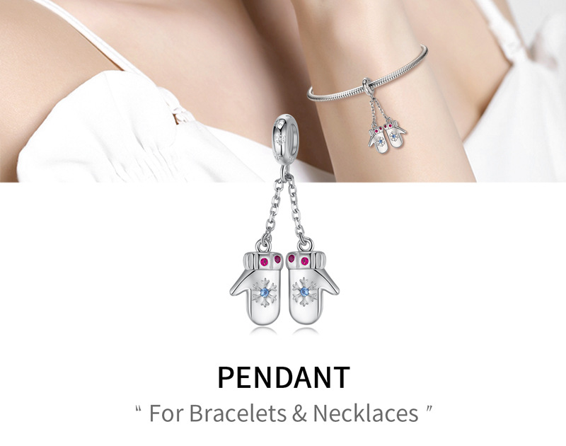 Snowflake Gloves Pendant Christmas Series 925 Silver Personality Necklace Bracelet Diy Pendant