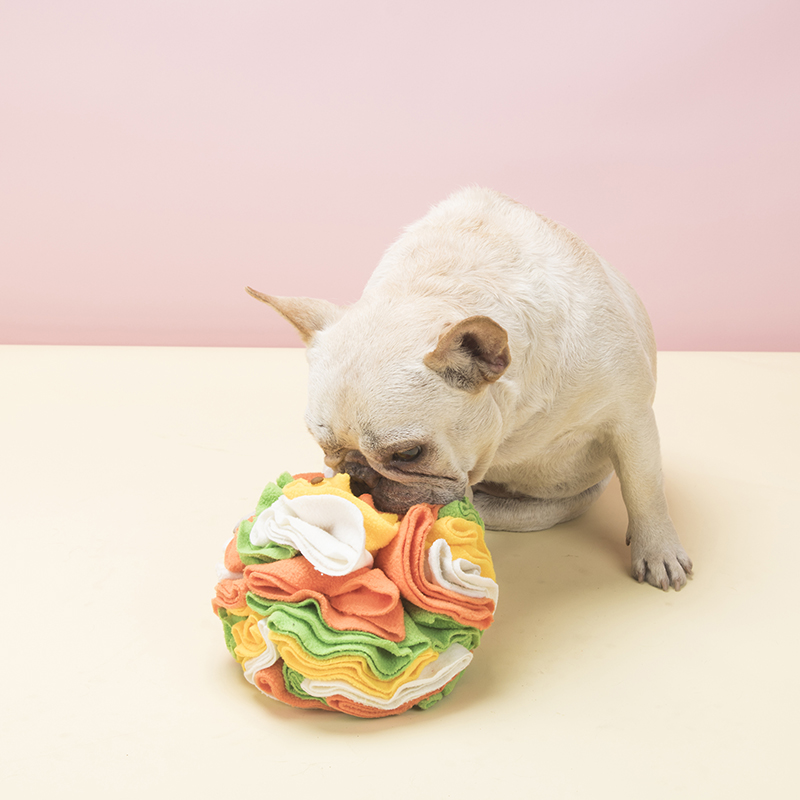 2. The smell and the ball is a traditional sniffing of the updated version of the mat, the dog is more difficult to get food. Therefore, the dog by sniffing the ball for the first time, puts food on the edge of the easy to find, when dogs already know hiding food in it, and you can put the food on the inside of the ball, a modest increase in dog feeding difficulty.