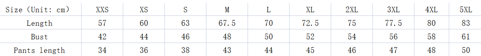 Sizes: XXS, XS, S, M, L, XL, XXL, XXXL, 4XL, 5XL, 3XS