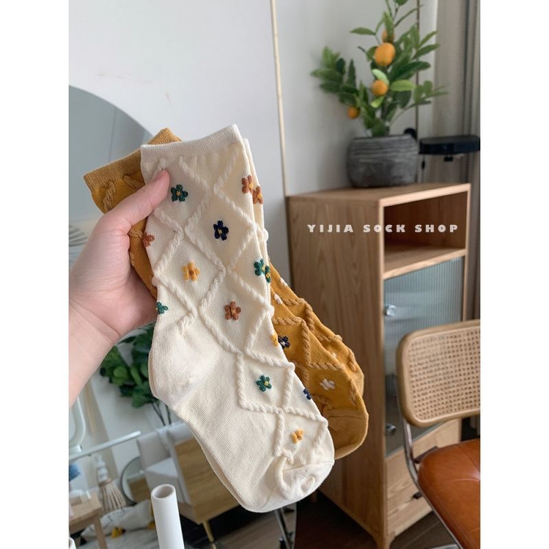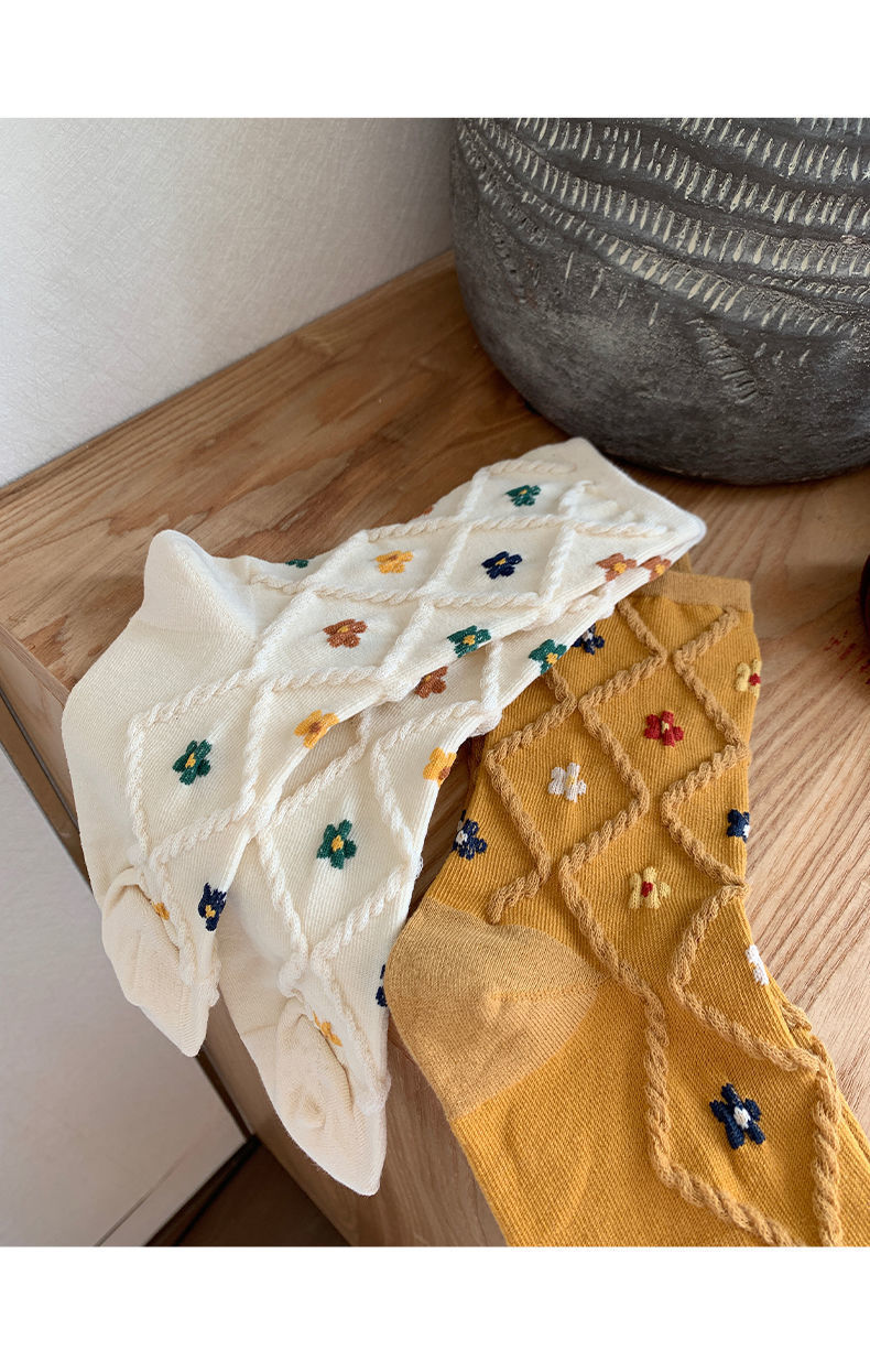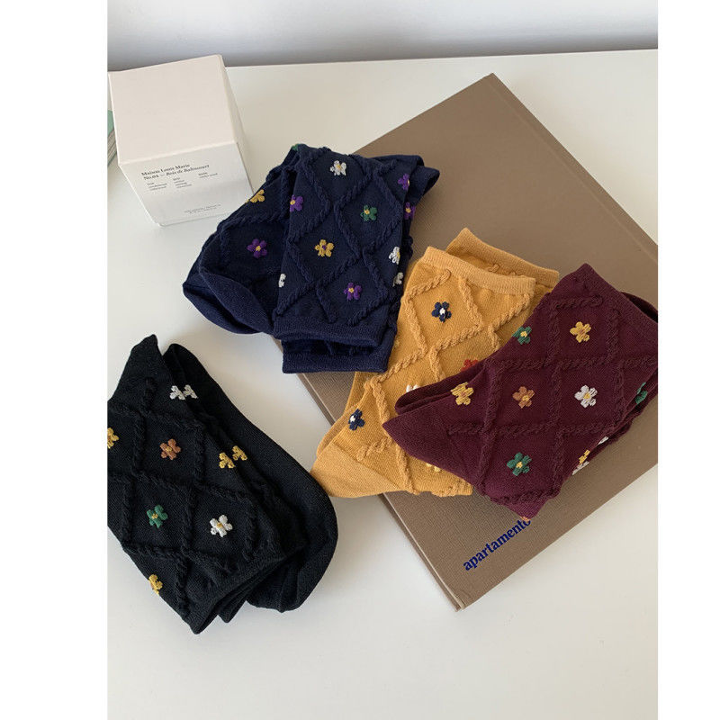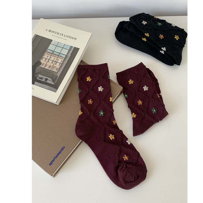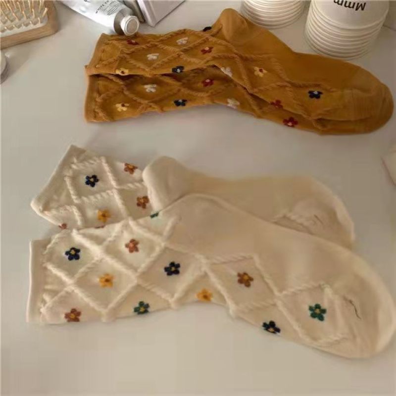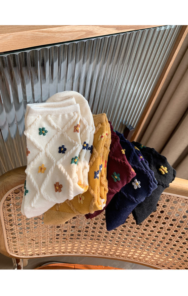 Socks Dongdaemun Rhombus Embossed Small Flowers