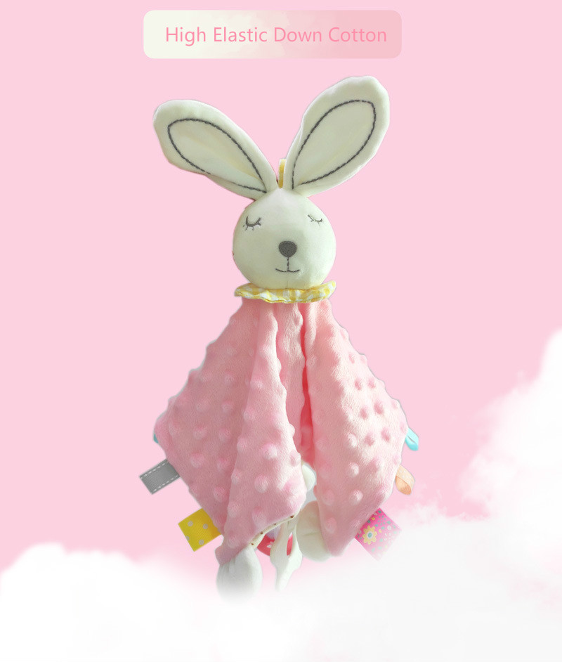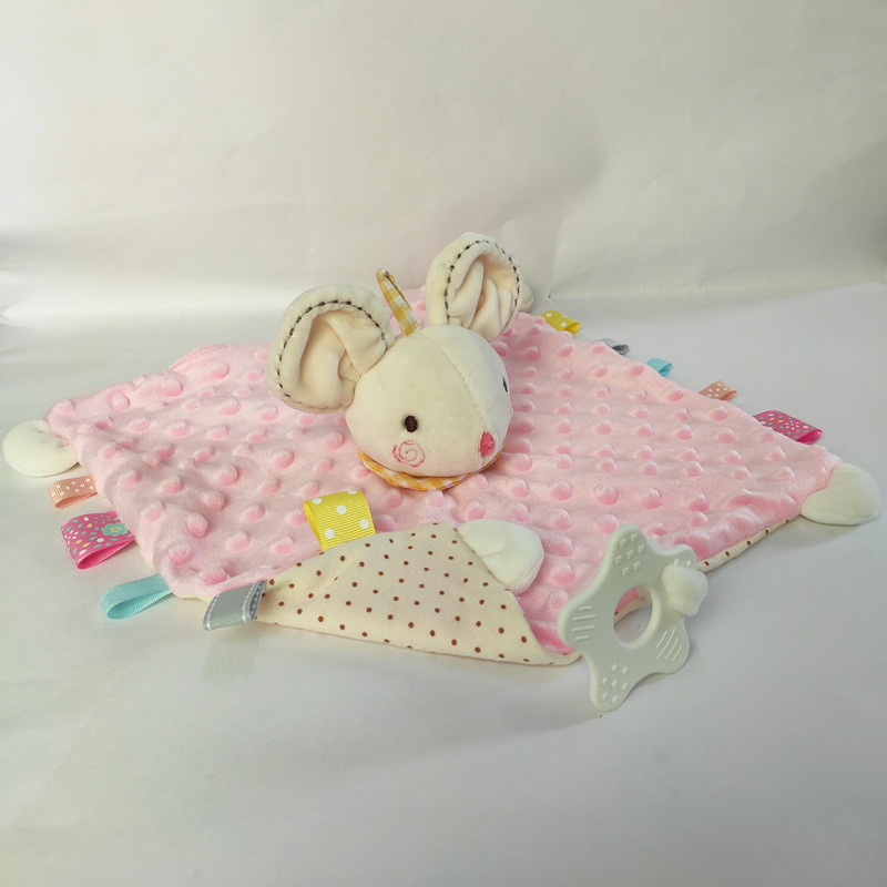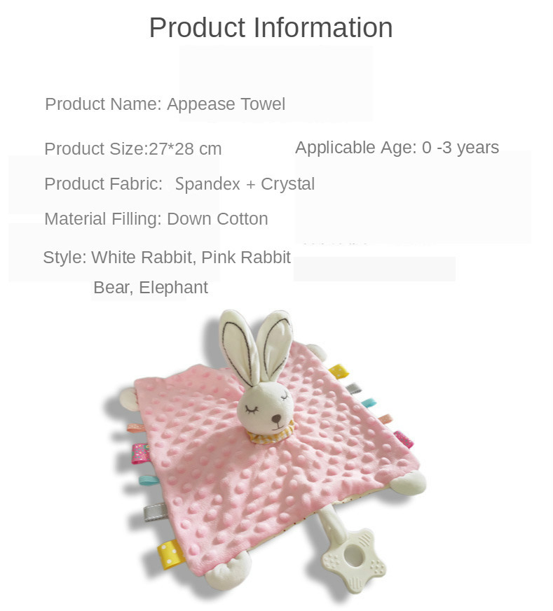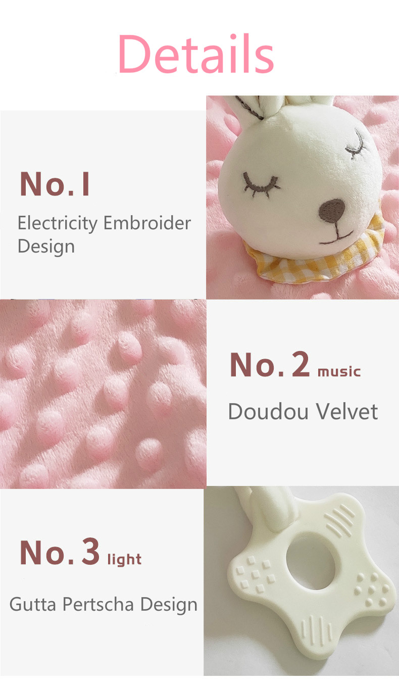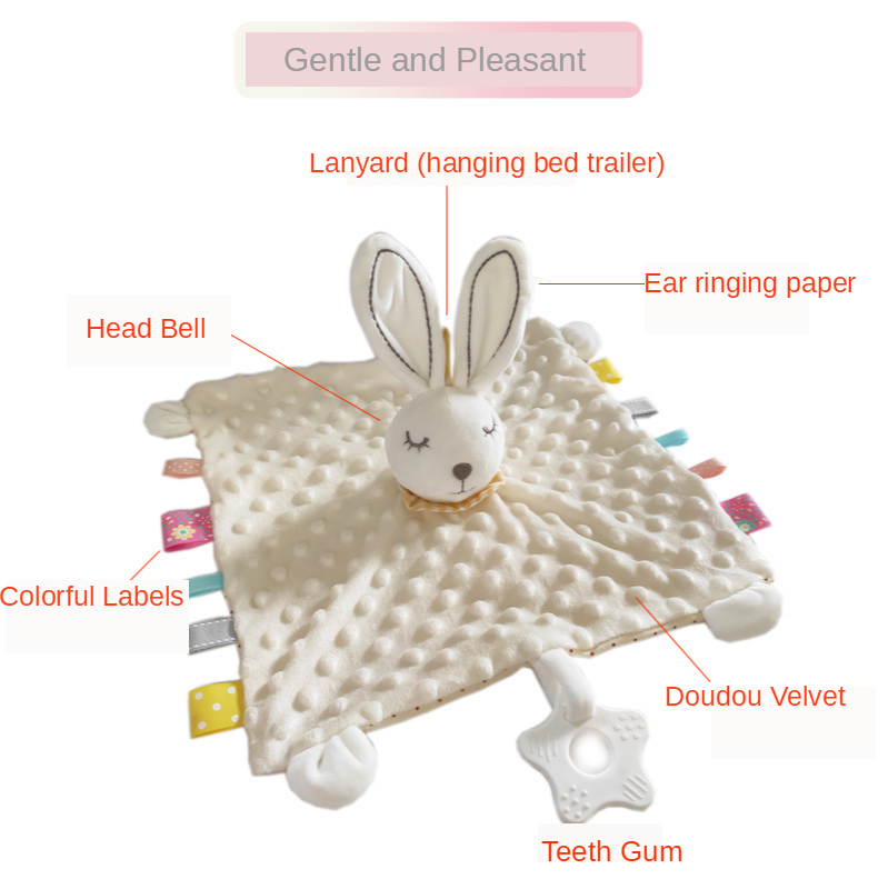 3. Very soft dotted plush cloth can give your baby more touch enhance your baby's sense of security and a colorful baby blankie with lovely design backing can attract your baby's attention. And the toy is Phthalates and BPA free