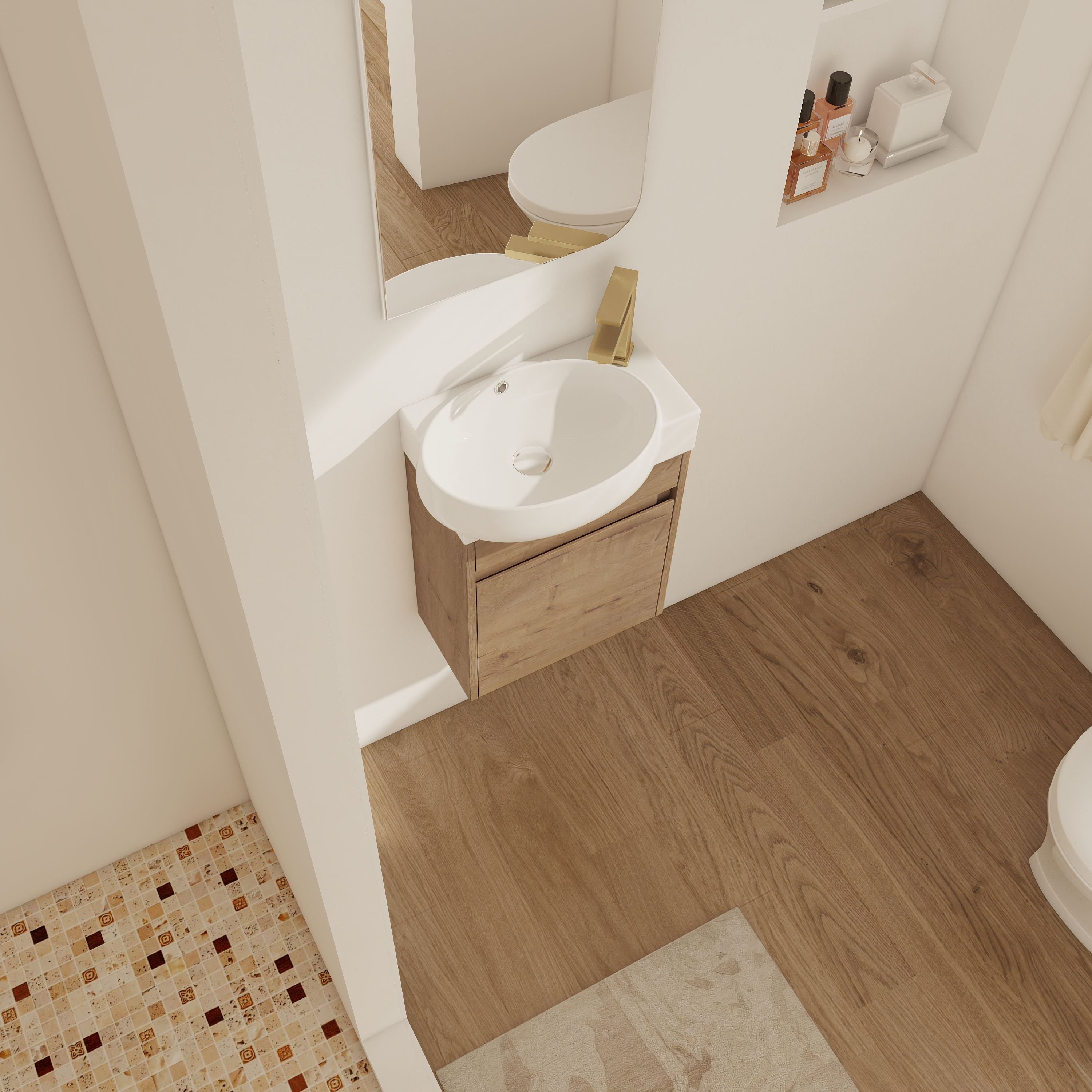 The floating design makes the product more simple and generous. The space at the bottom can be more convenient for placing dirty clothes baskets and daily cleaning. Elegant wall-mounted vanity is compact in size and ideal for any small bath room or powder room.