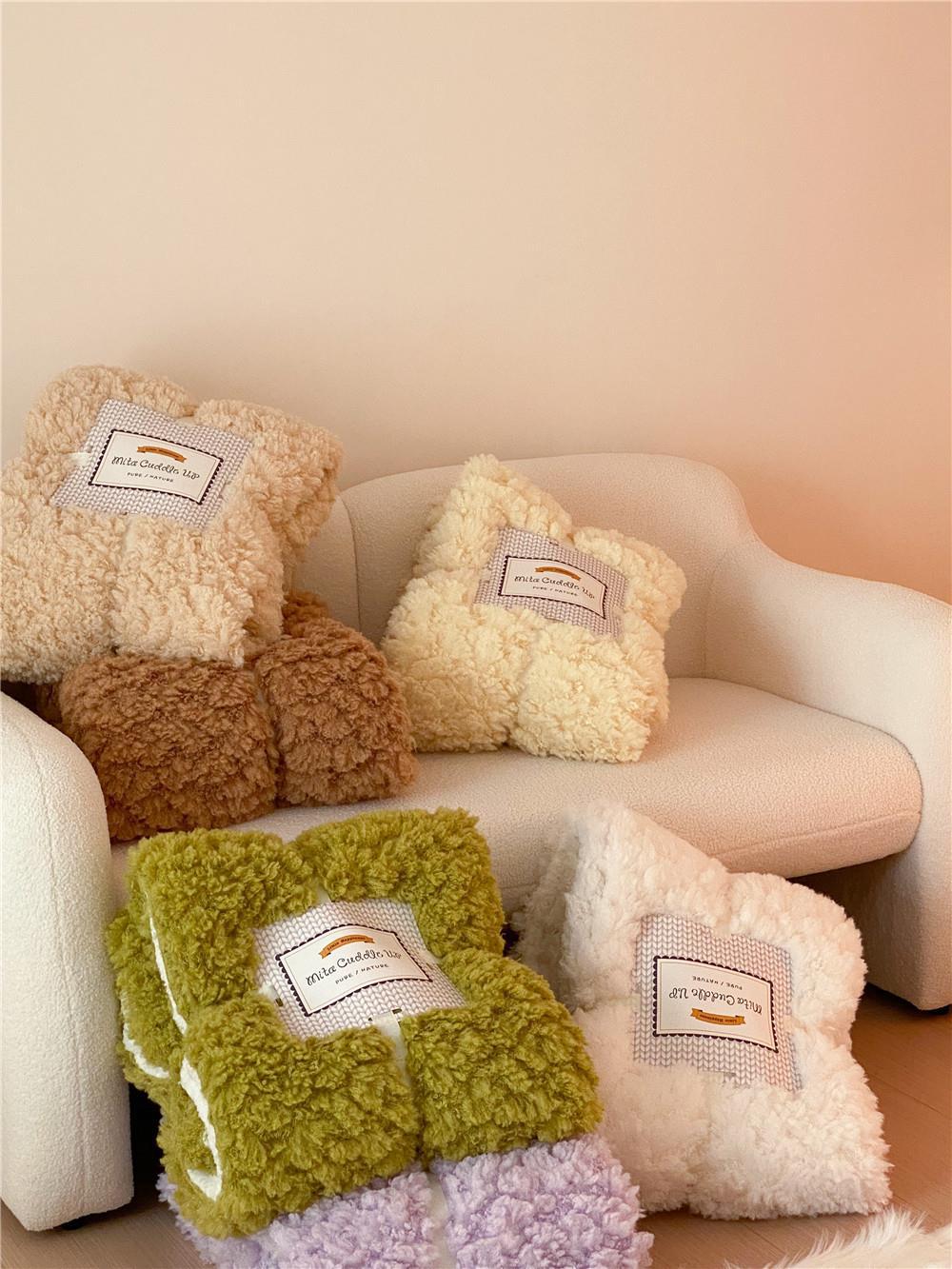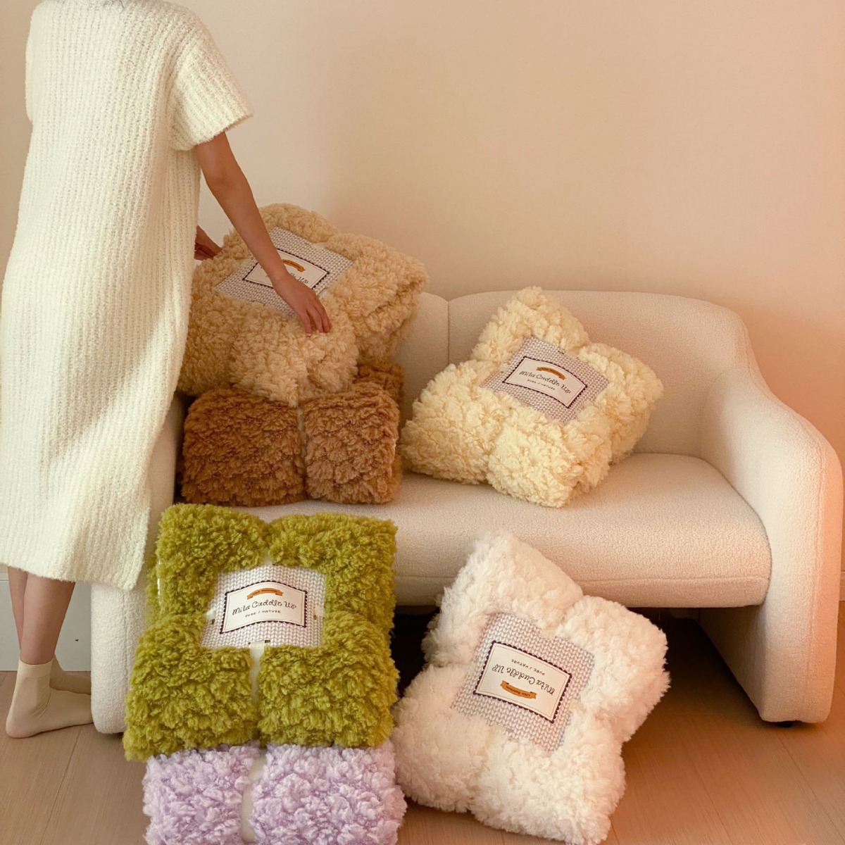 Color: Cloud puff blanket-quinoa maca, cloud puff blanket-satin green