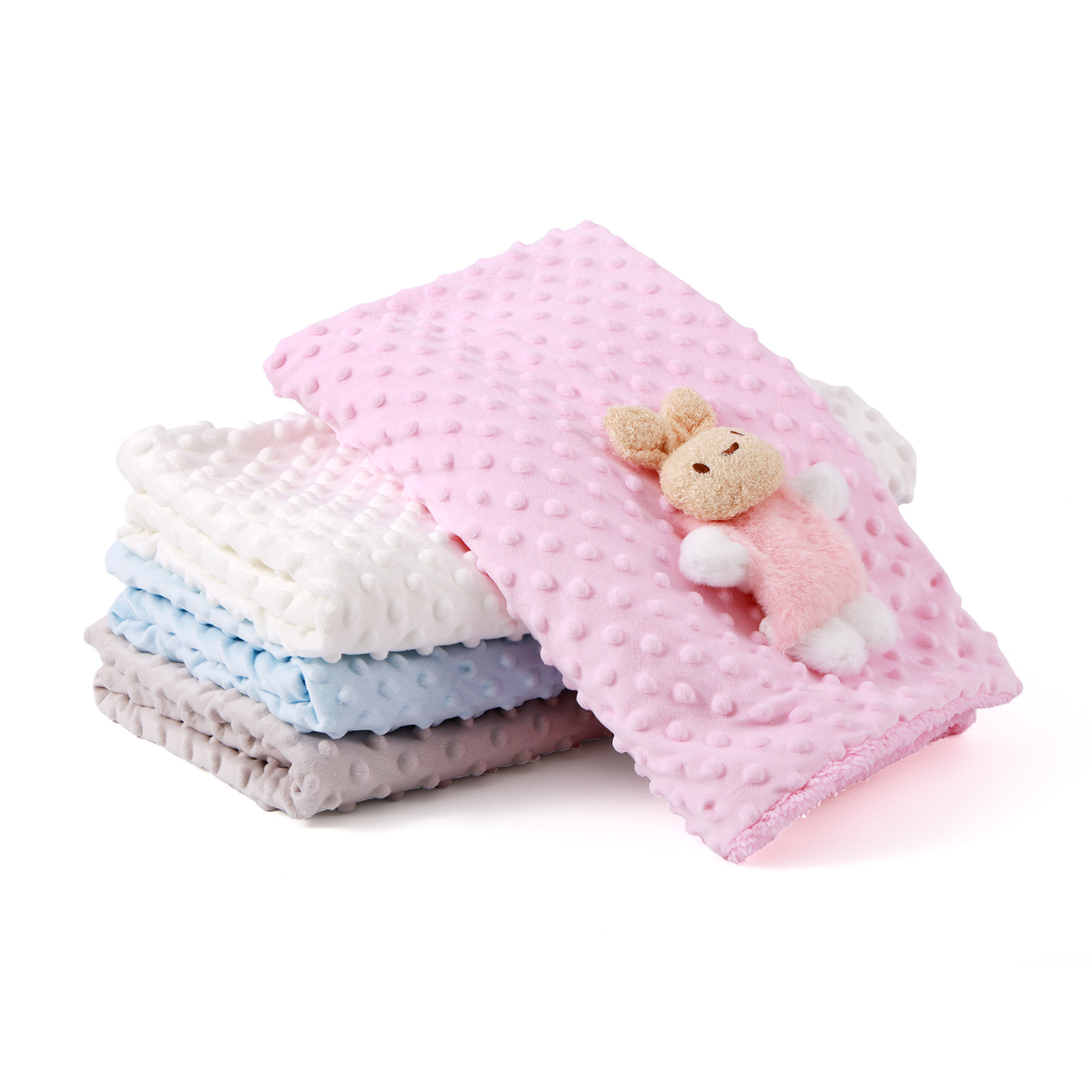 Colors: White Bunny Blanket, Blue Bunny Blanket, Pink Bunny Blanket, Gray Bunny Blanket, Blue Blanket, Pink Blanket, Gray Blanket, White Blanket