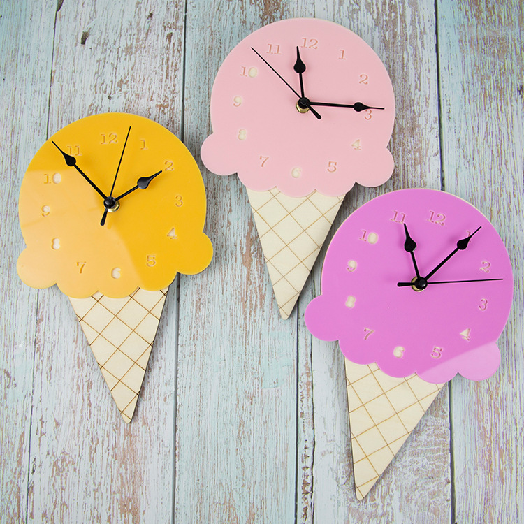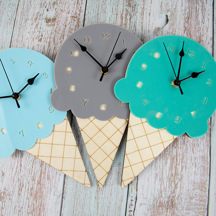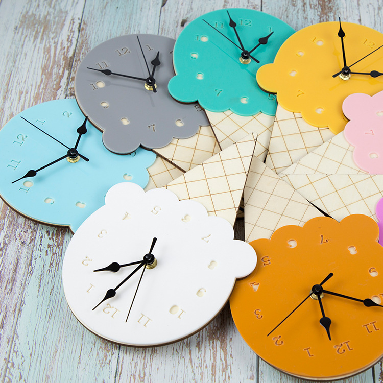 Name: Ins Nordic style ice cream cartoon mute wall clockMaterial: Basswood