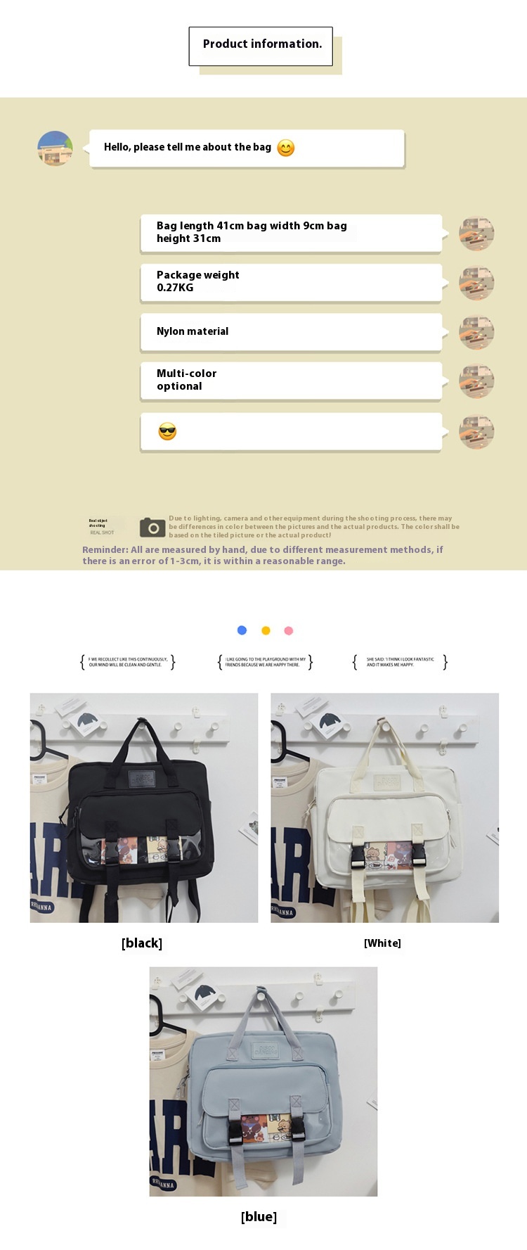 Color: black, white, blue
