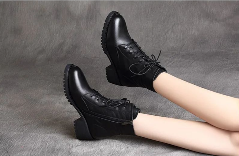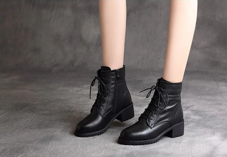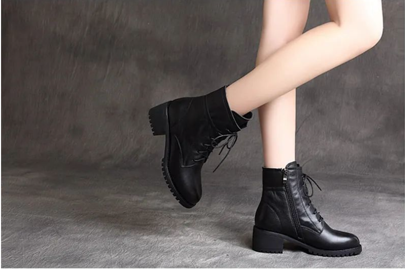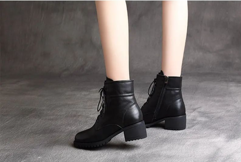 Soft Leather And Velvet British Style Thick Heel Short Boots All-match