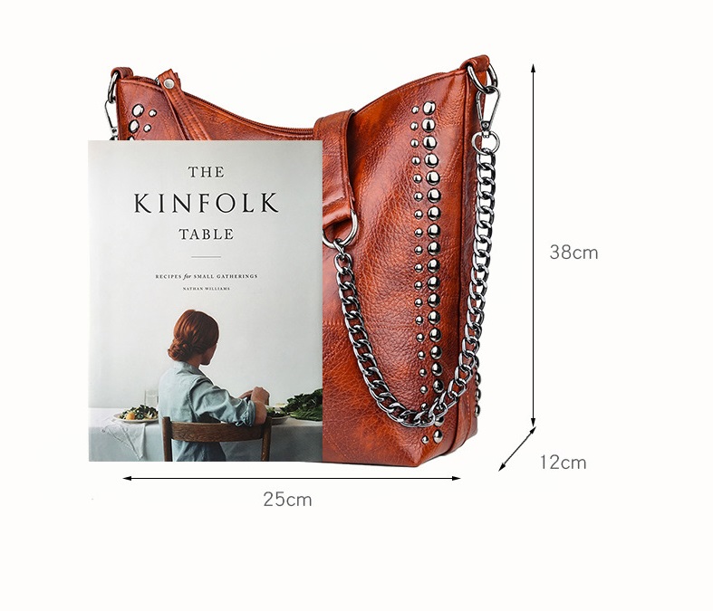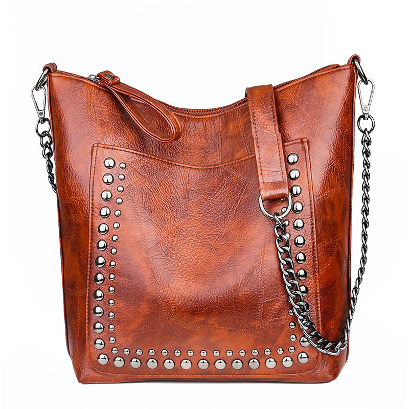 Soft Leather Studded Large Capacity Shoulder Crossbody Bag