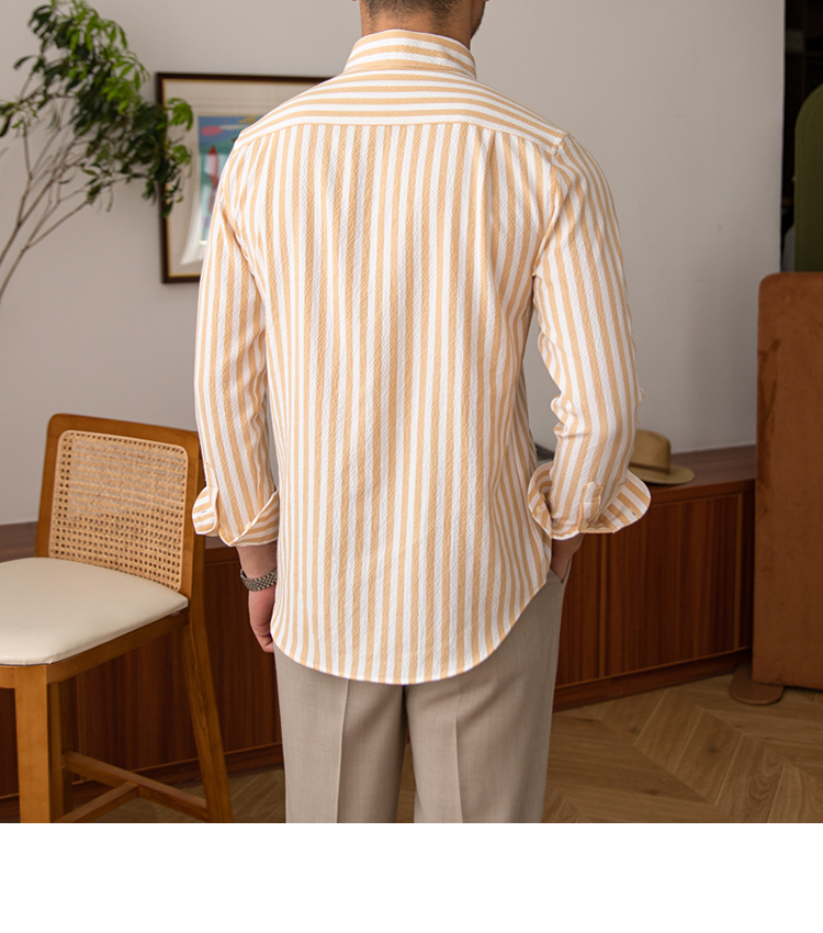 Soft Non-ironing Breathable Seersucker Striped Large Collar Shirt For Men