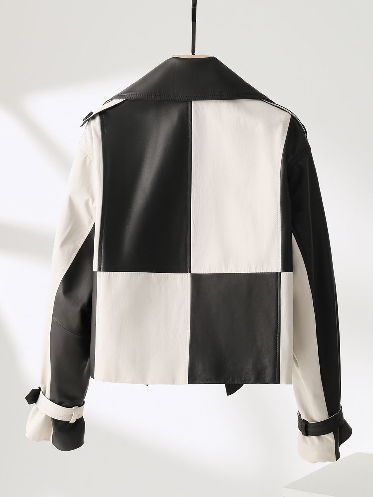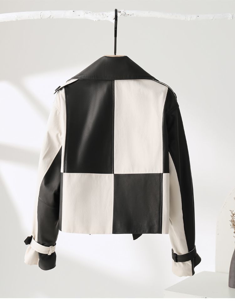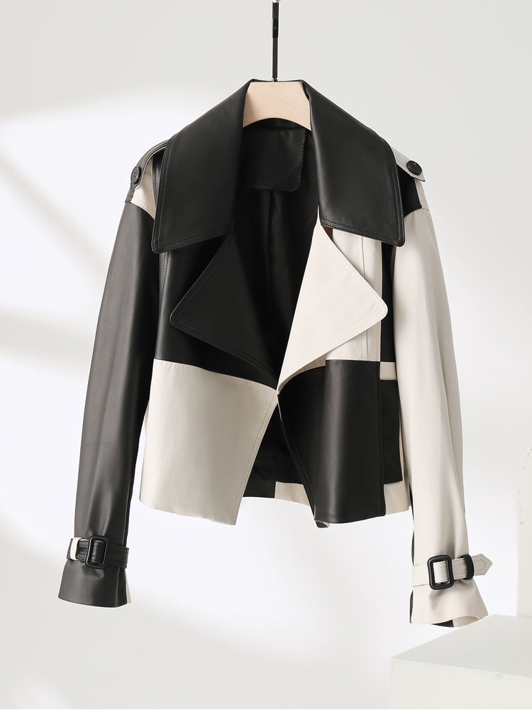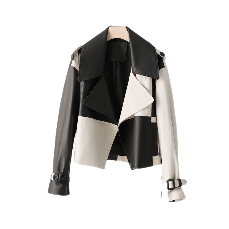 Soft PU Leather Jacket Splicing Coat Loose Western Style Jacket