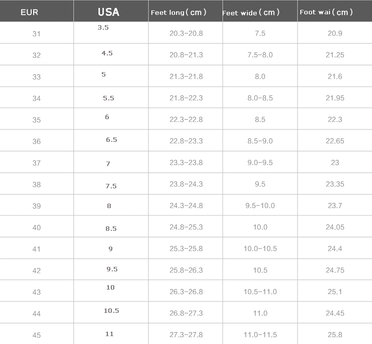 Shoe size: 33 34 35 36 37 38 39 40 41