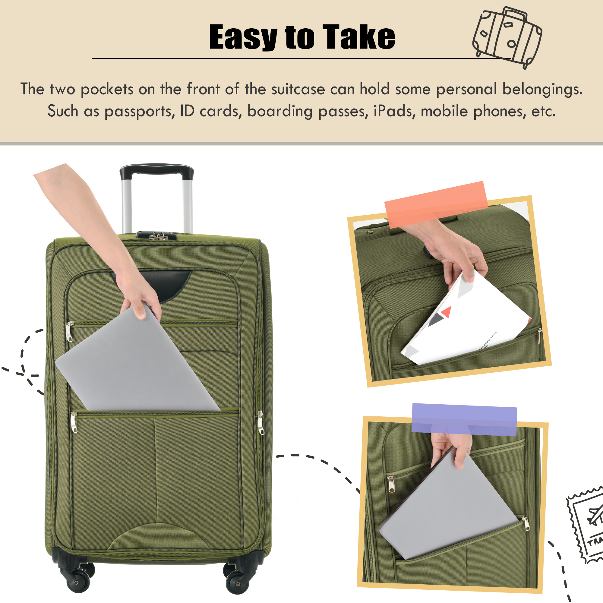 Product Name:Softside Luggage Expandable 3 Piece Set Suitcase Upright Spinner Softshell Lightweight Luggage Travel Set-22/26/30 inches