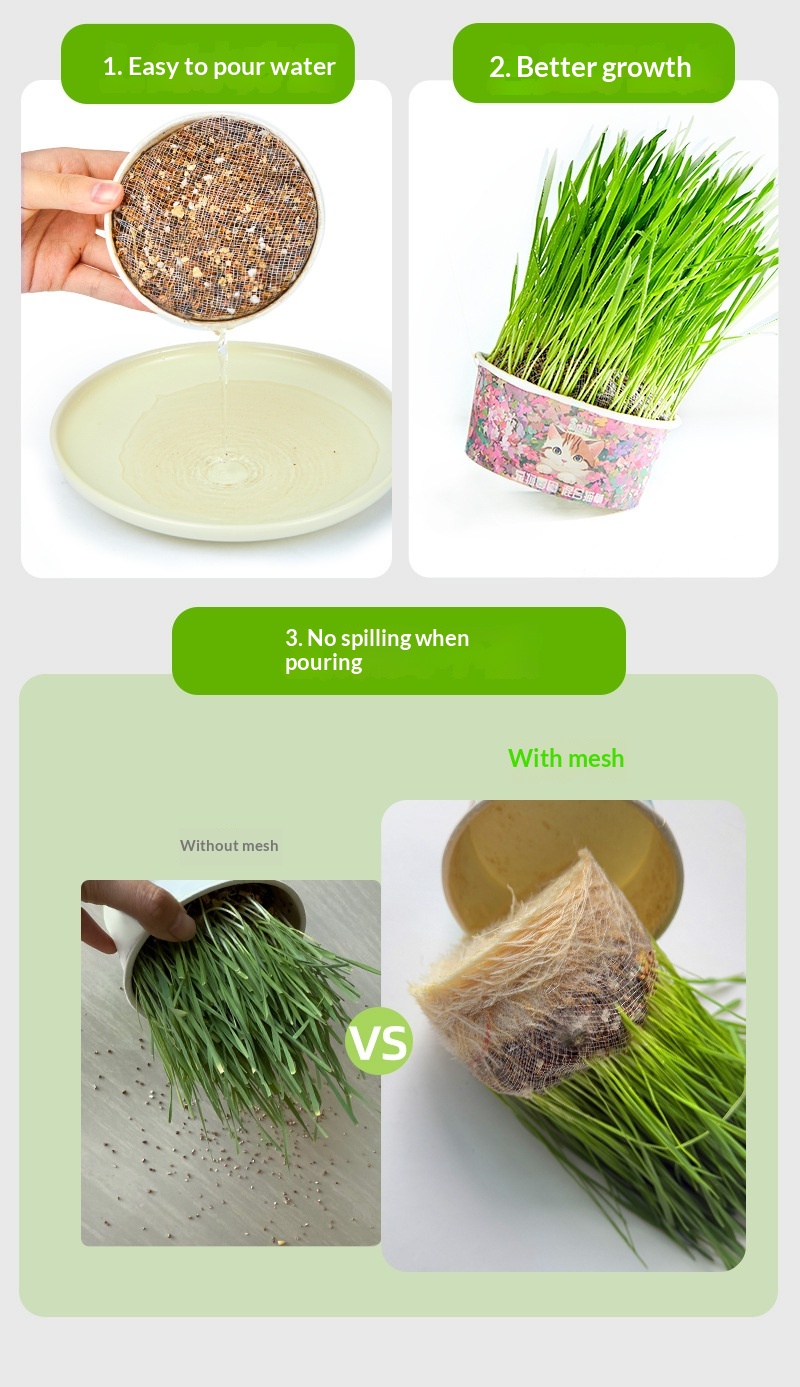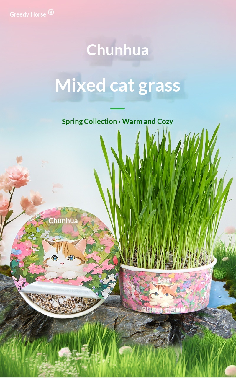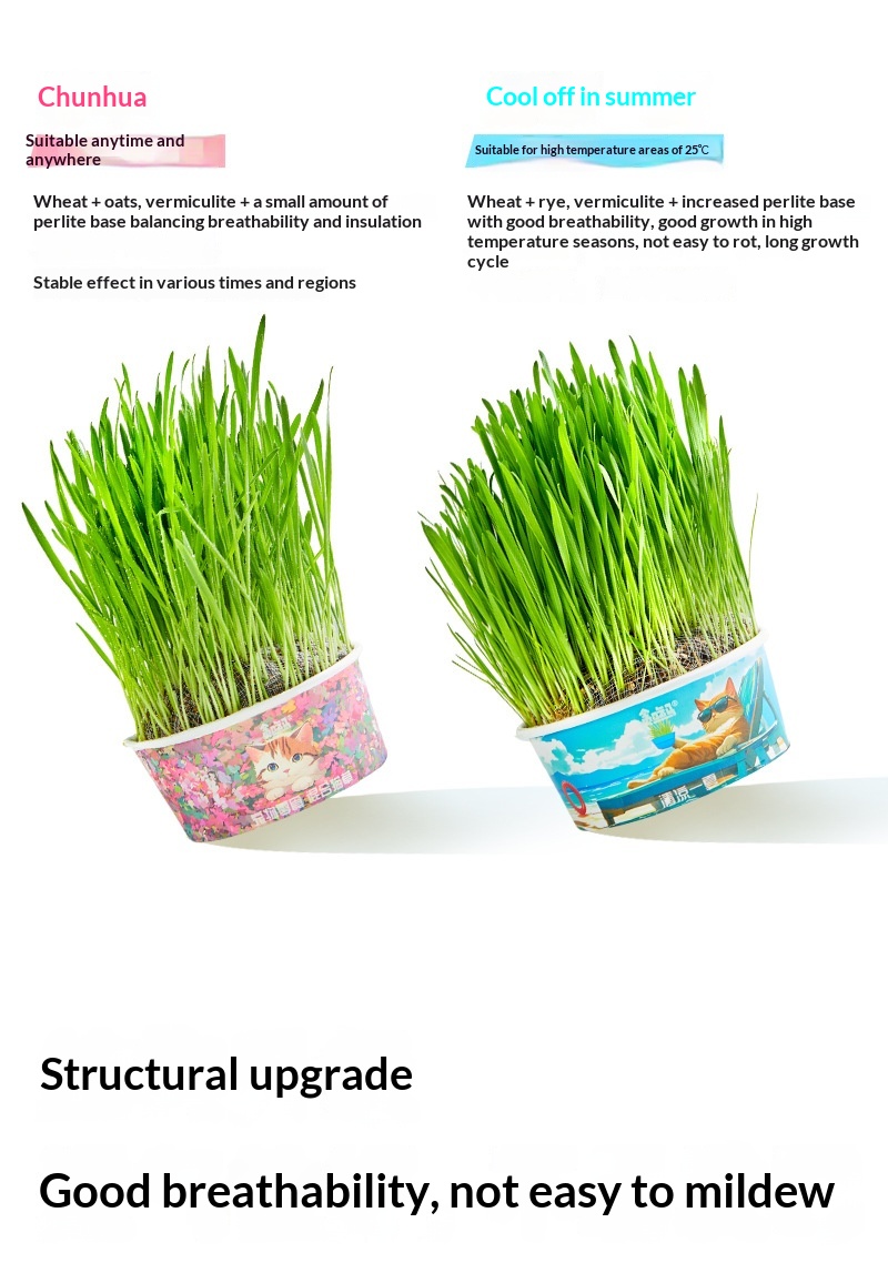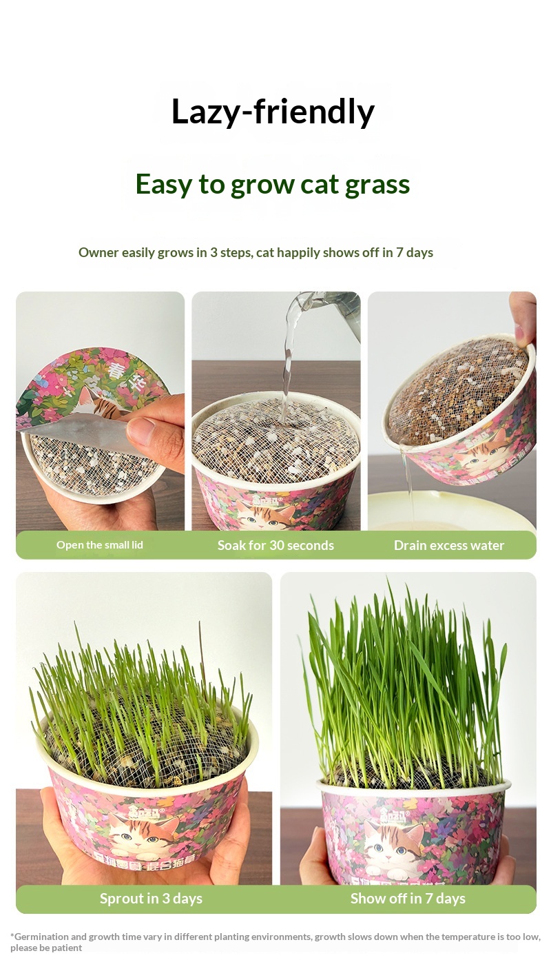This soil-free cat grass snack mix is specially formulated for cats, offering natural nutrition and a satisfying chew that helps support digestion and reduce hairballs. Available in multiple package sizes to meet different feeding needs.