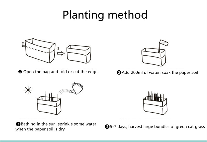 Material: Food grade waterproof paper bag, preferably barley seeds, pulp cultivation soil, nutrients