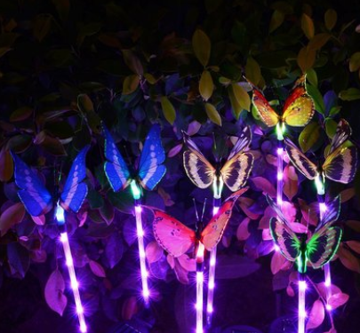 1. Perfect Solar Yard Decoration - 30 inch tall, RGB color changing solar powered fiber optic butterfly garden stake lights, with 5 purple LEDs in each transparent stake which has fabulous light effect.