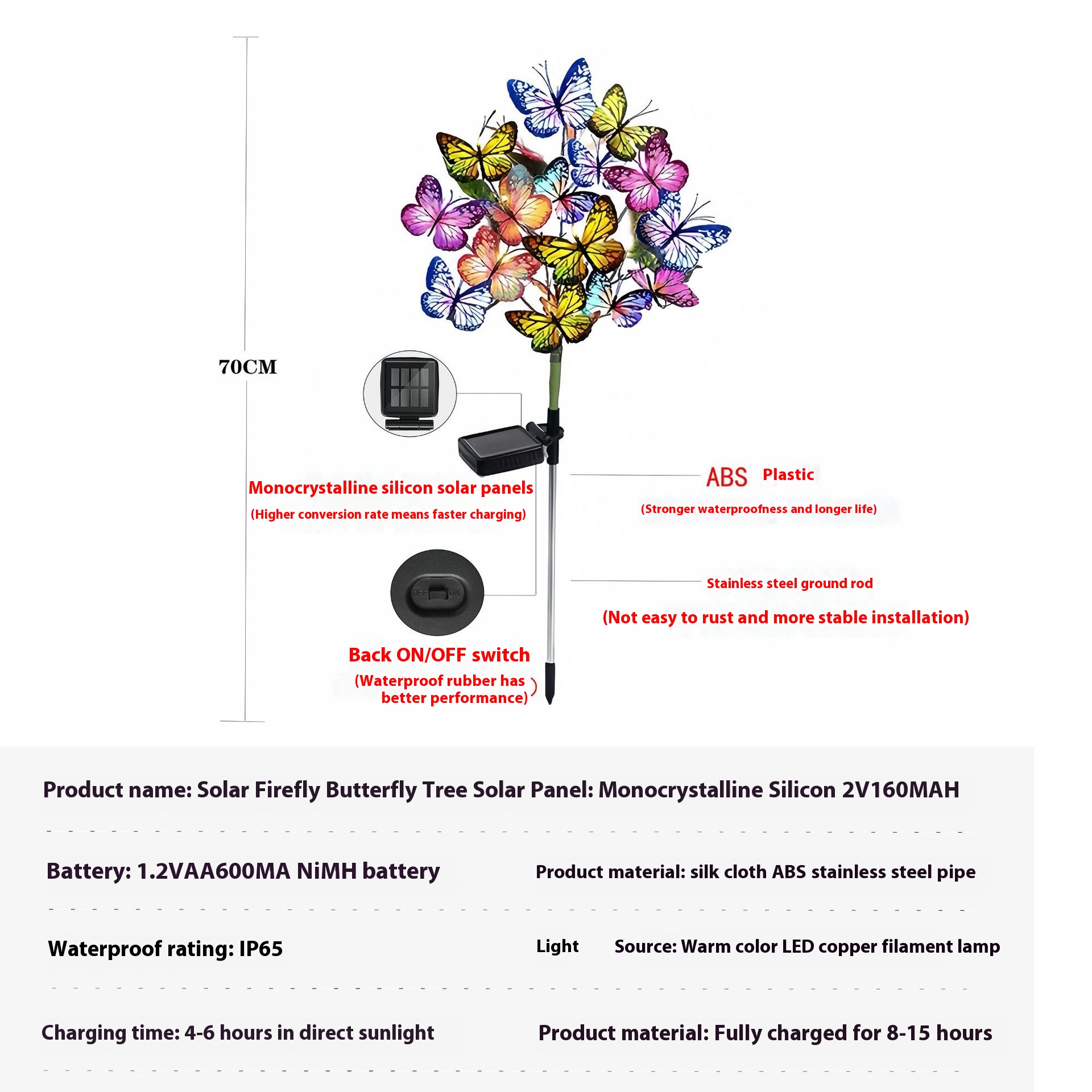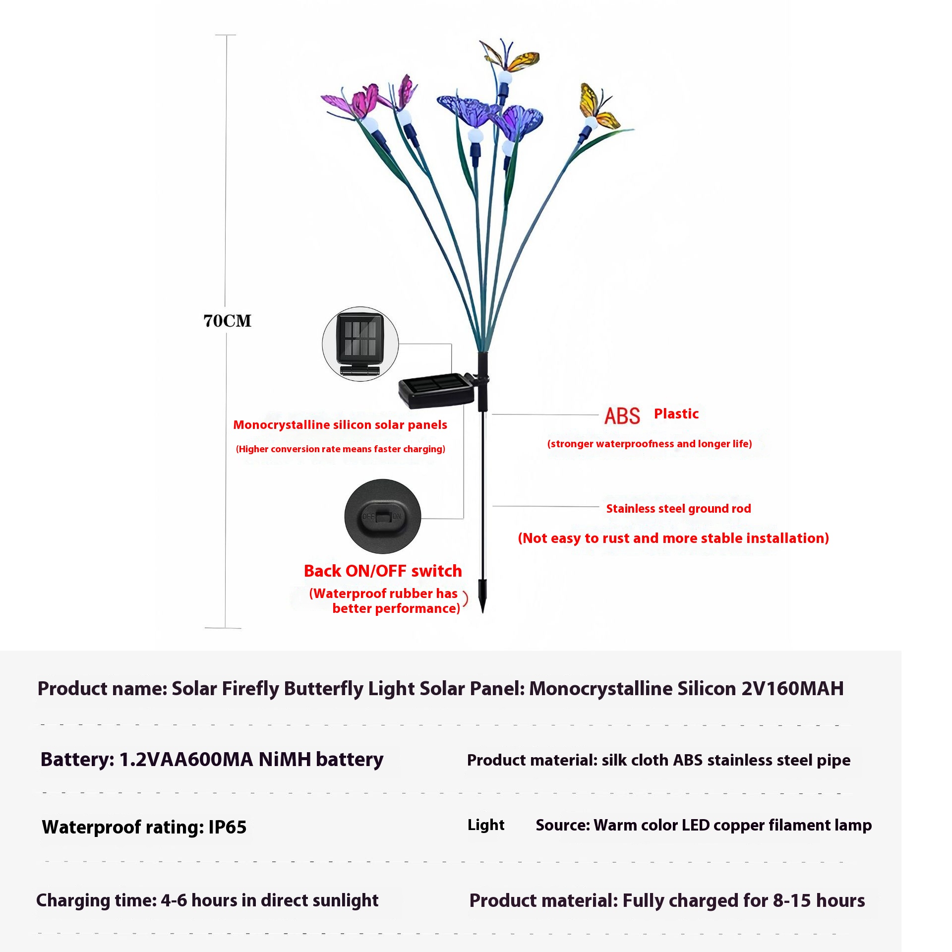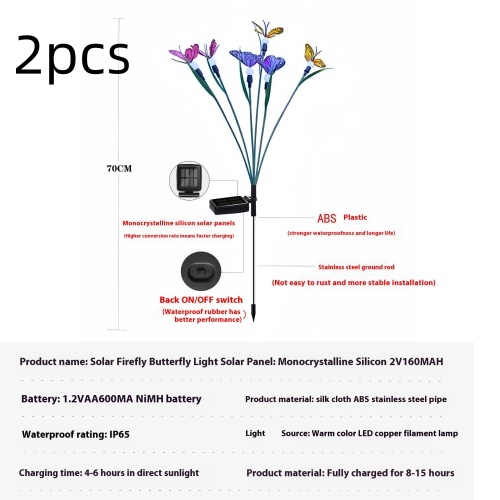 Product information:Rated Power: 7.2 Life span: three years Protection level: IP65 Voltage: 1.2 Overall size: 70 Shape: Butterfly