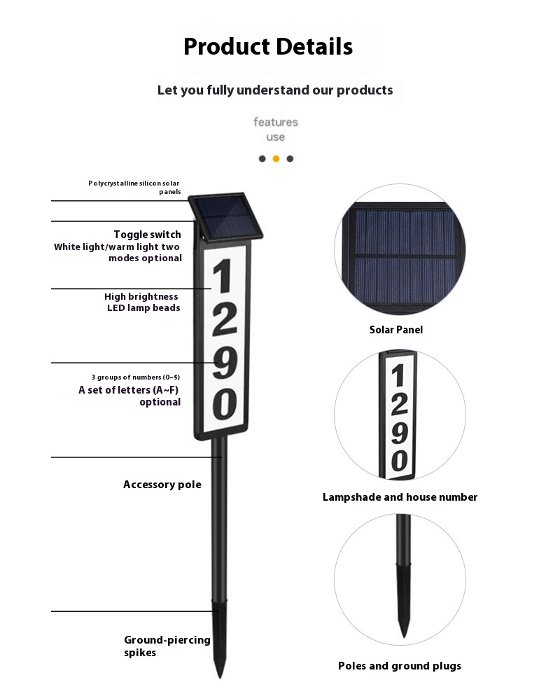 Specification Category: Solar powered doorplate light