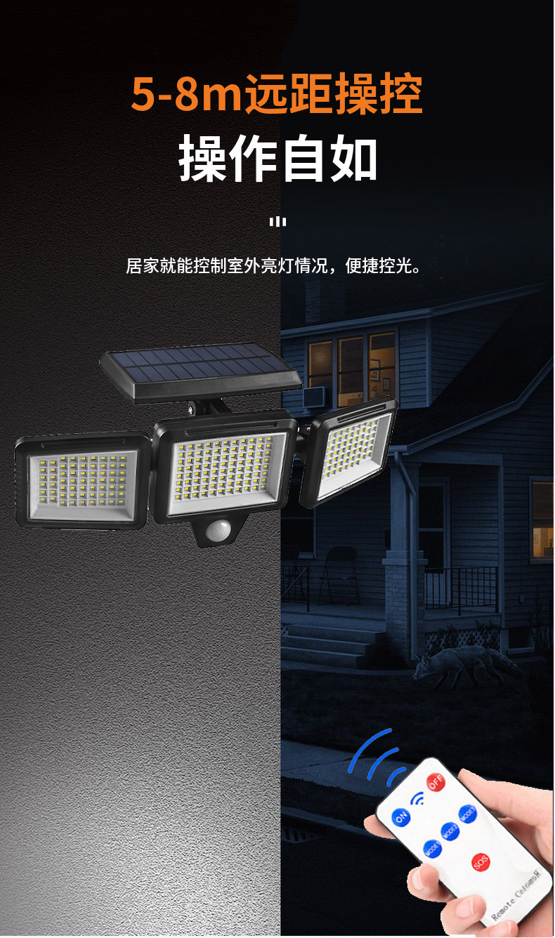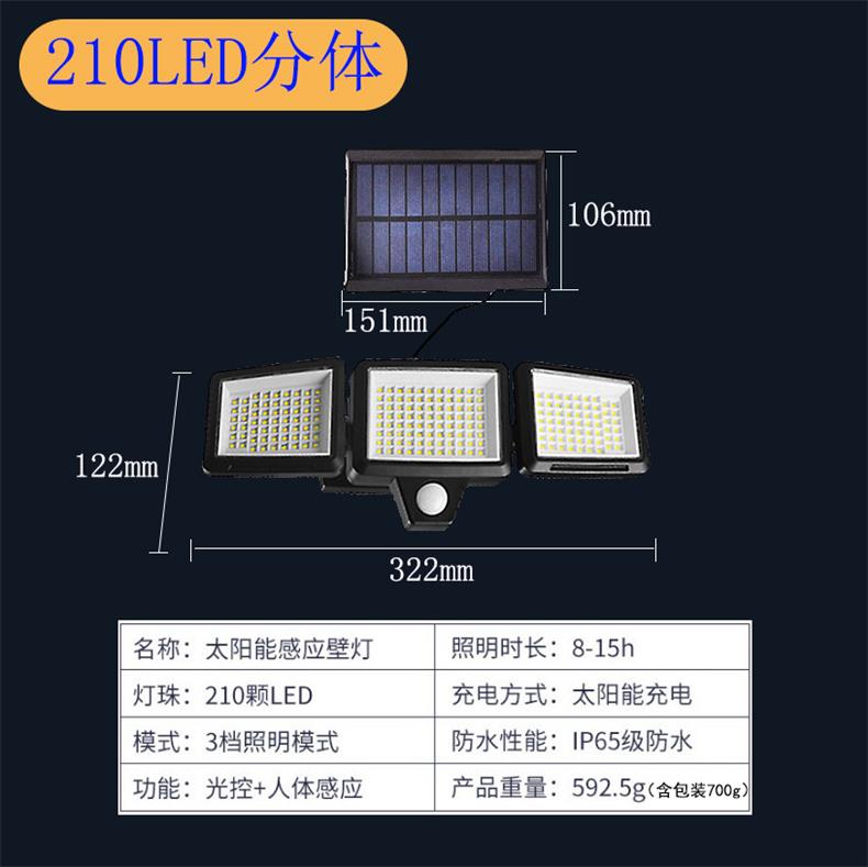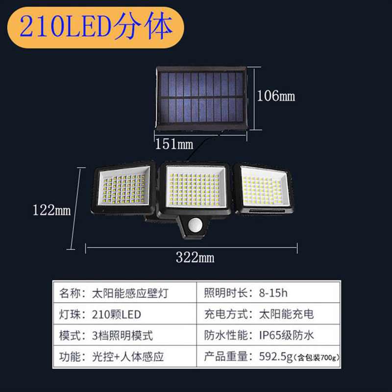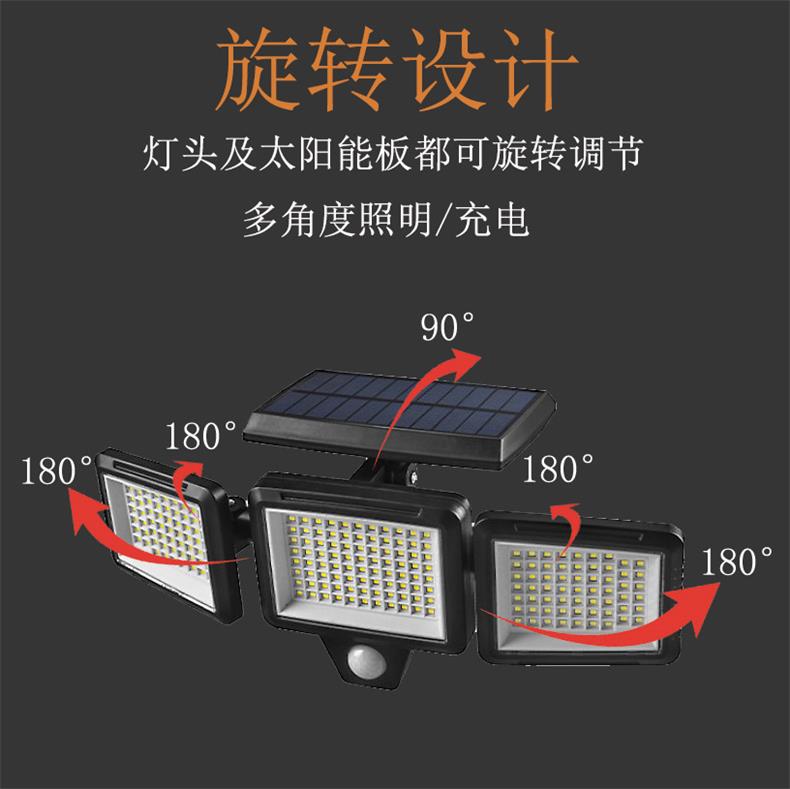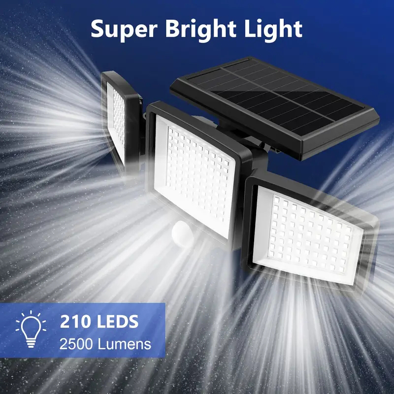 Solar Outdoor Lights, 210 LED Security Lights with Remote Control, 3 Heads Motion Sensor Lights, 27
