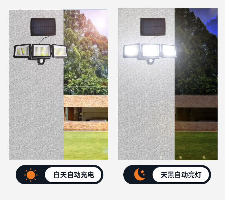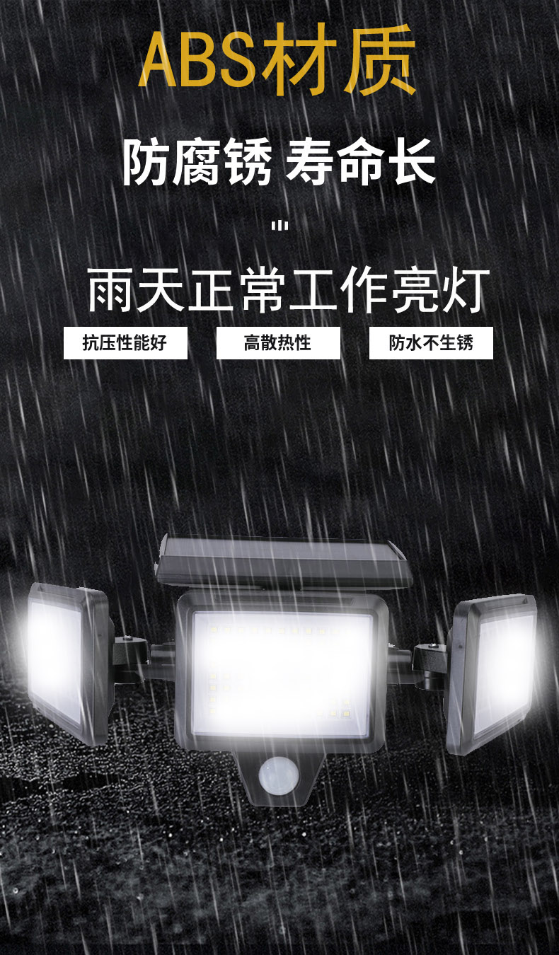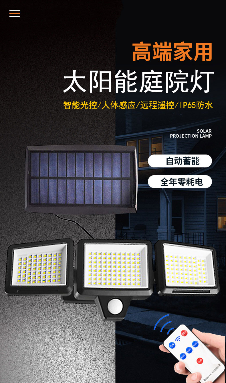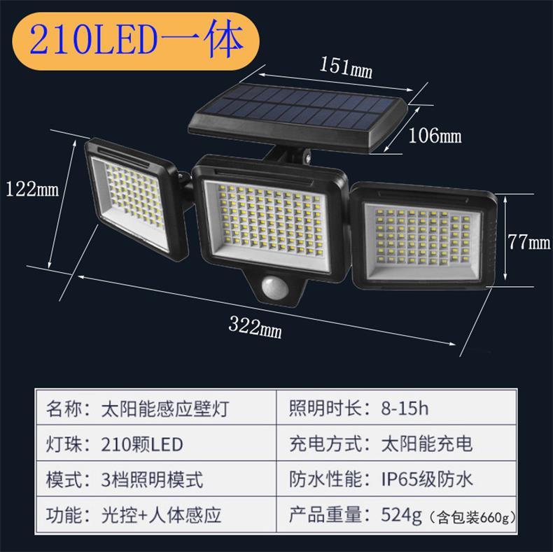 Solar Outdoor Lights, 210 LED Security Lights with Remote Control, 3 Heads Motion Sensor Lights, 27