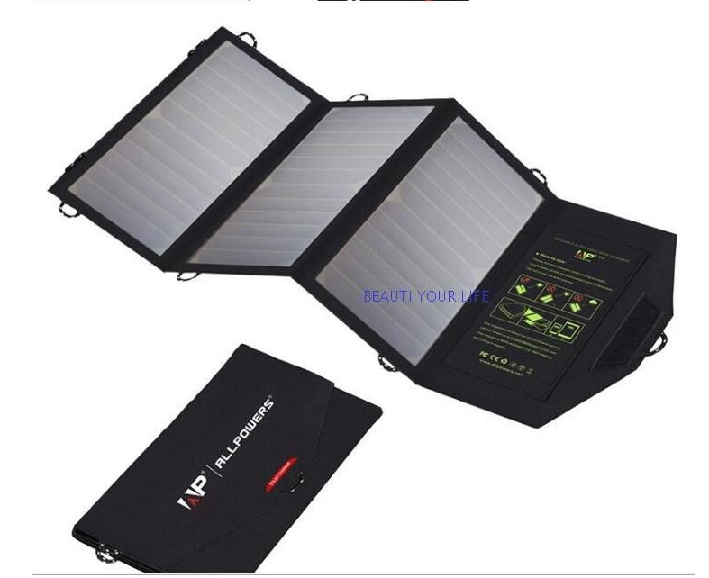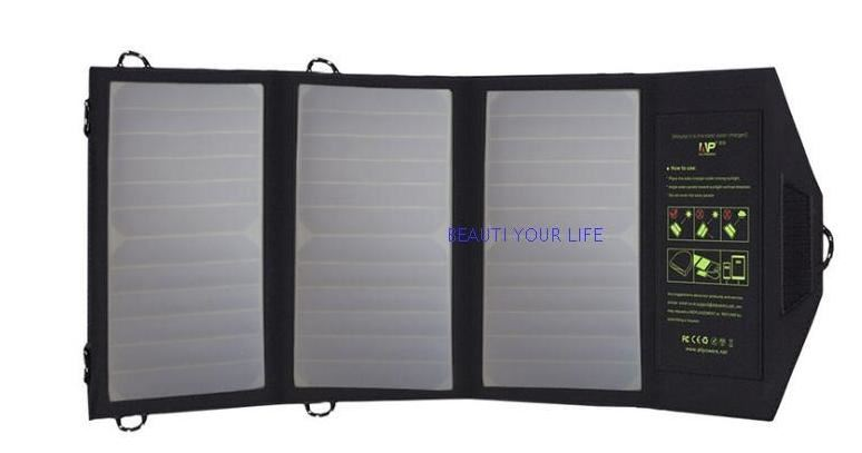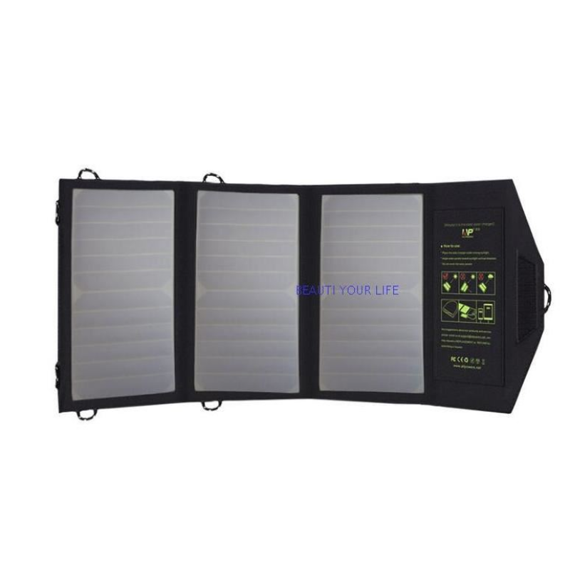 In addition, the industrial-grade PET panels are bound by heavy-duty polyester canvas, making this solar charger water-resistant.