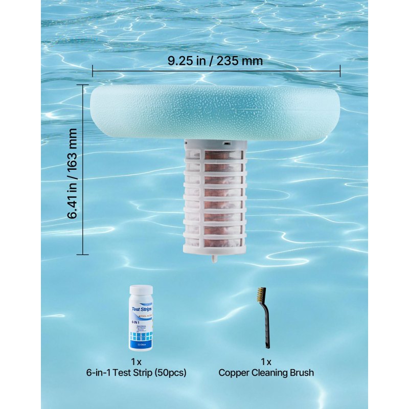 Easy to Use: Simply place the copper ionizer for pool in the water and let it float to run on solar power. Ideal for in-ground and above-ground pools, saltwater, outdoor spas, and chlorine pools, it is compatible with all pool surfaces