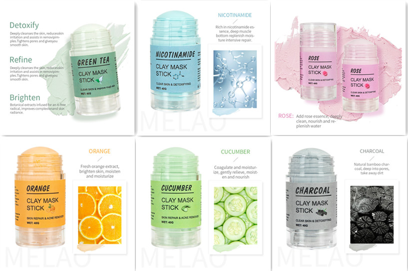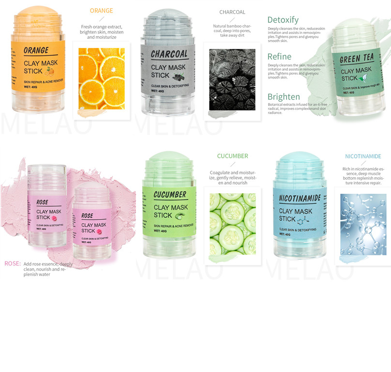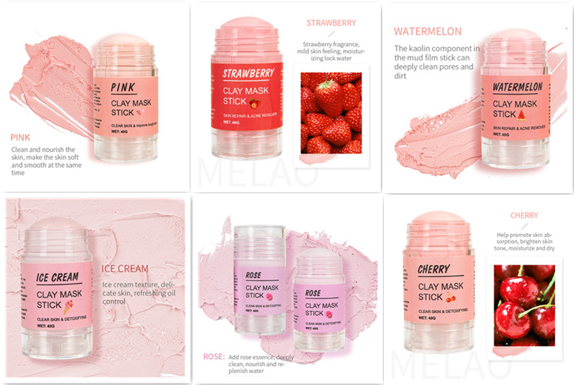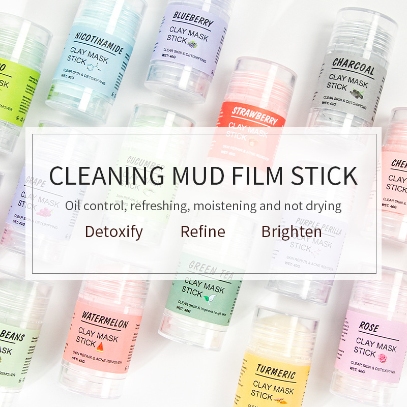 Product Specifications: Bamboo Charcoal Mud Film Stick, Cherry Mud Film Stick, Niacinamide Mud Film Stick, Orange Mud Film Stick, Cucumber Mud Film Stick, Eggplant Mud Film Stick, Grape Mud Film Stick, Avocado Mud Film Stick, Rose Mud Film Stick, Mung bean clay film stick, green tea clay film stick, blueberry clay film stick, turmeric clay film stick, strawberry clay film stick, pink clay film stick, perilla clay film stick, watermelon clay film stick, ice cream clay film stick