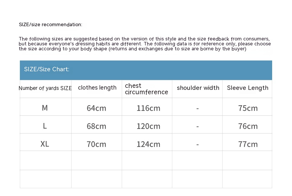1. Asian sizes are 1 to 2 sizes smaller than European and American people. Choose the larger size if your size between two sizes. Please allow 2-3cm differences due to manual measurement. 2. Please check the size chart carefully before you buy the item, if you don't know how to choose size, please contact our customer service. 3.As you know, the different computers display colors differently, the color of the actual item may vary slightly from the following images.