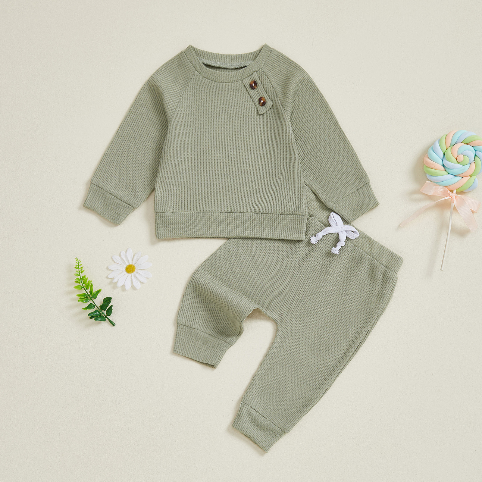 Solid Color Baby Top And Pants Set