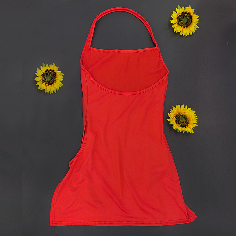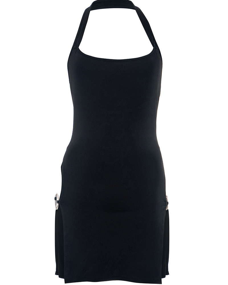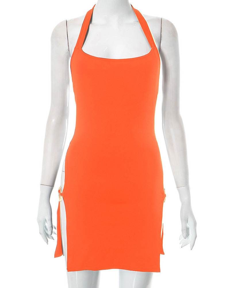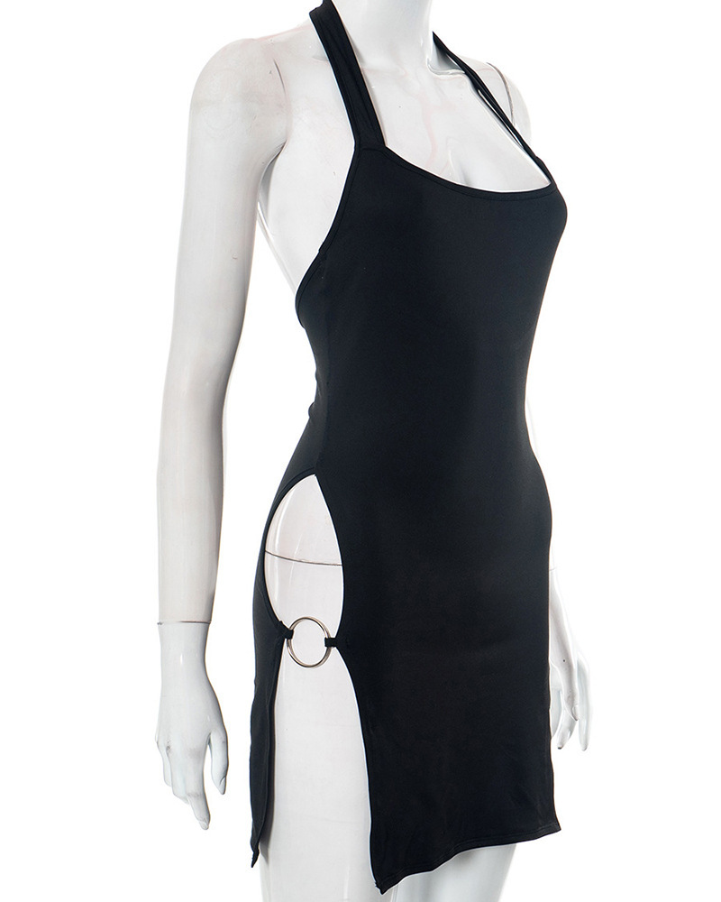 Solid-color Backless Hollow-out Halter Dress For Women