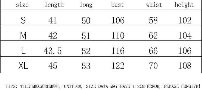 1. Asian sizes are 1 to 2 sizes smaller than European and American people. Choose the larger size if your size between two sizes. Please allow 2-3cm differences due to manual measurement. 2. Please check the size chart carefully before you buy the item, if you don't know how to choose size, please contact our customer service. 3.As you know, the different computers display colors differently, the color of the actual item may vary slightly from the following images.
