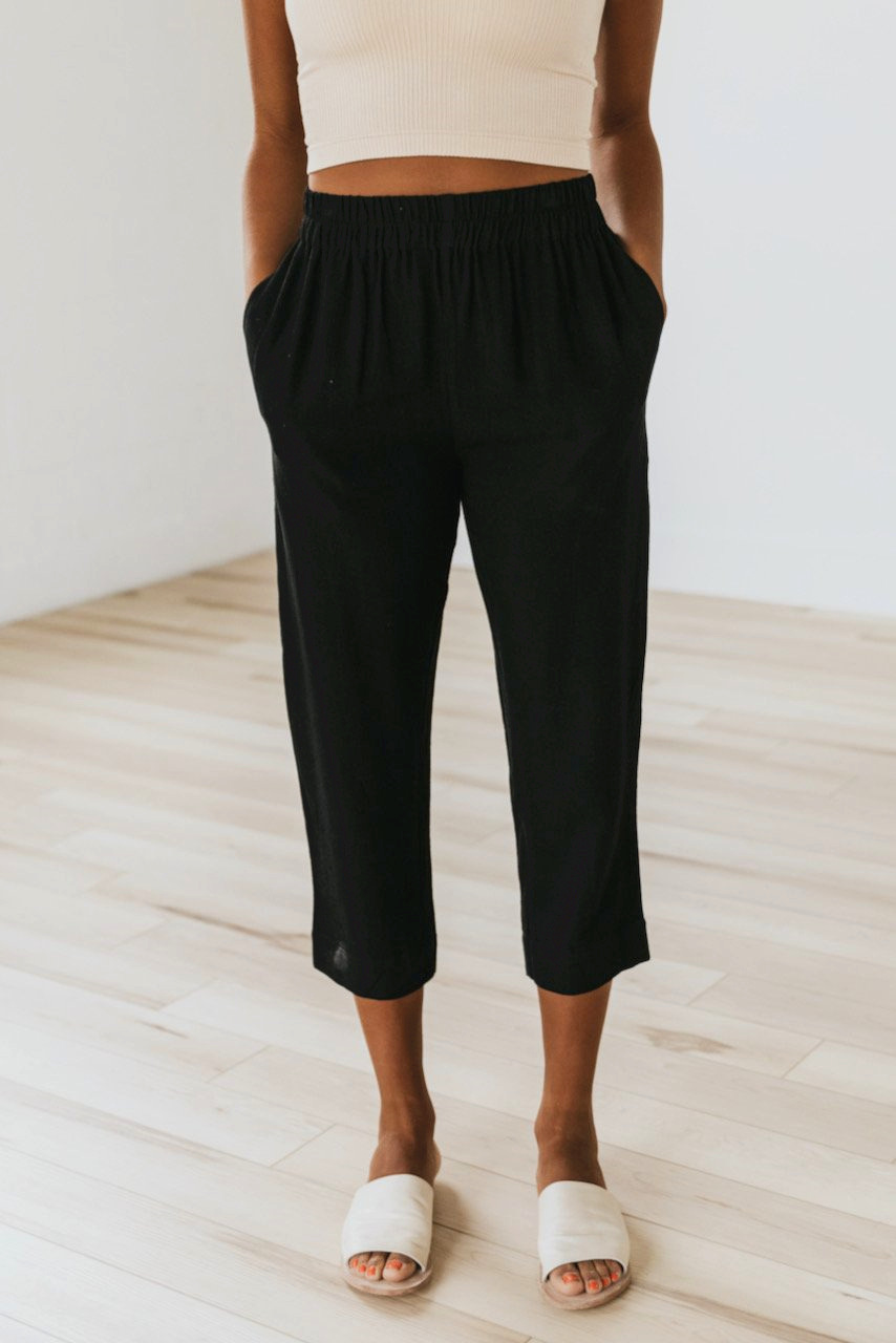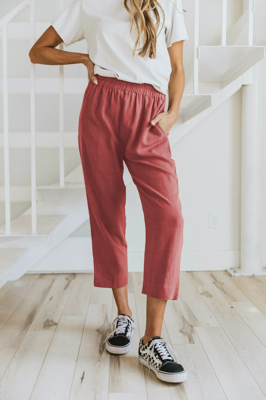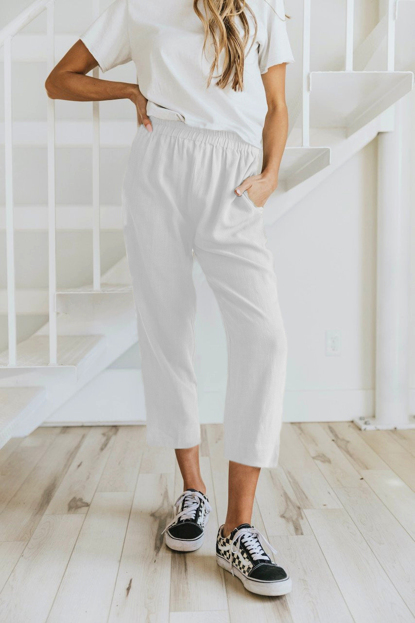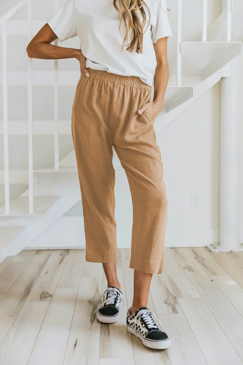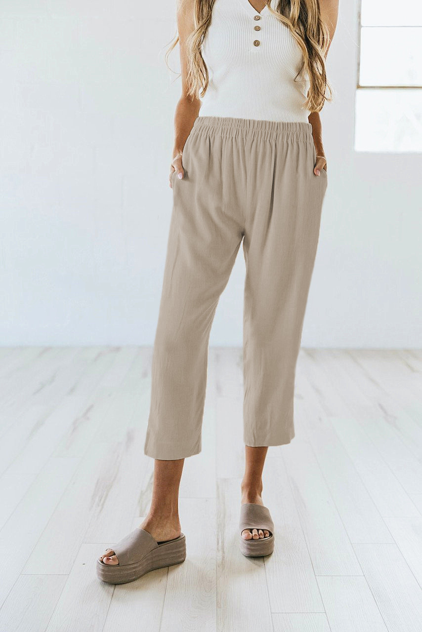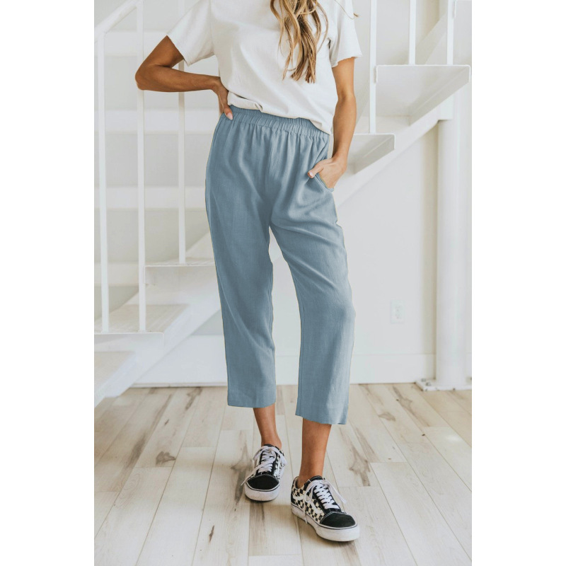 Solid Color Casual Elasticated High-waist Cropped Trousers