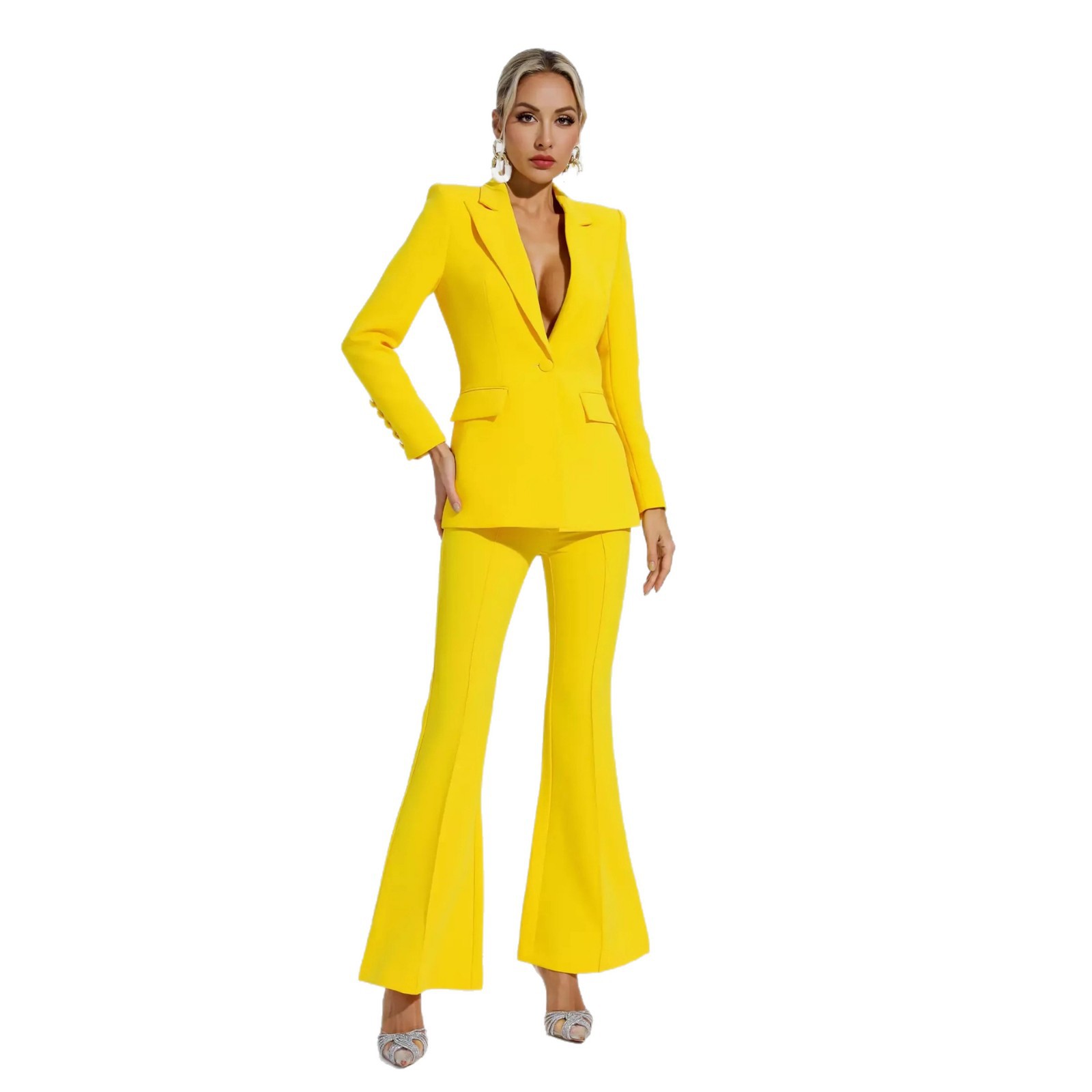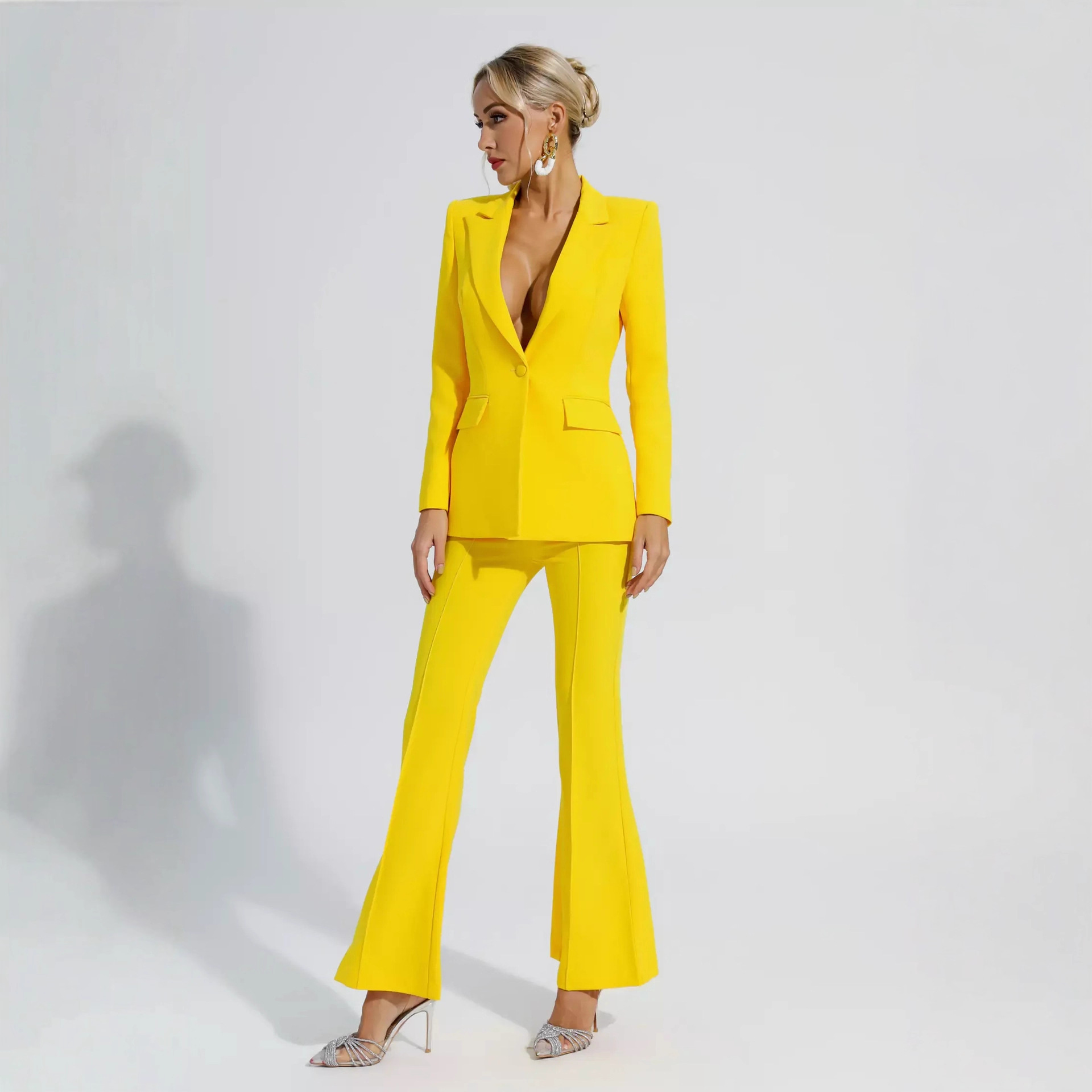Solid-Color Casual Slim-Fit Flare Long-Sleeve Pantsuit